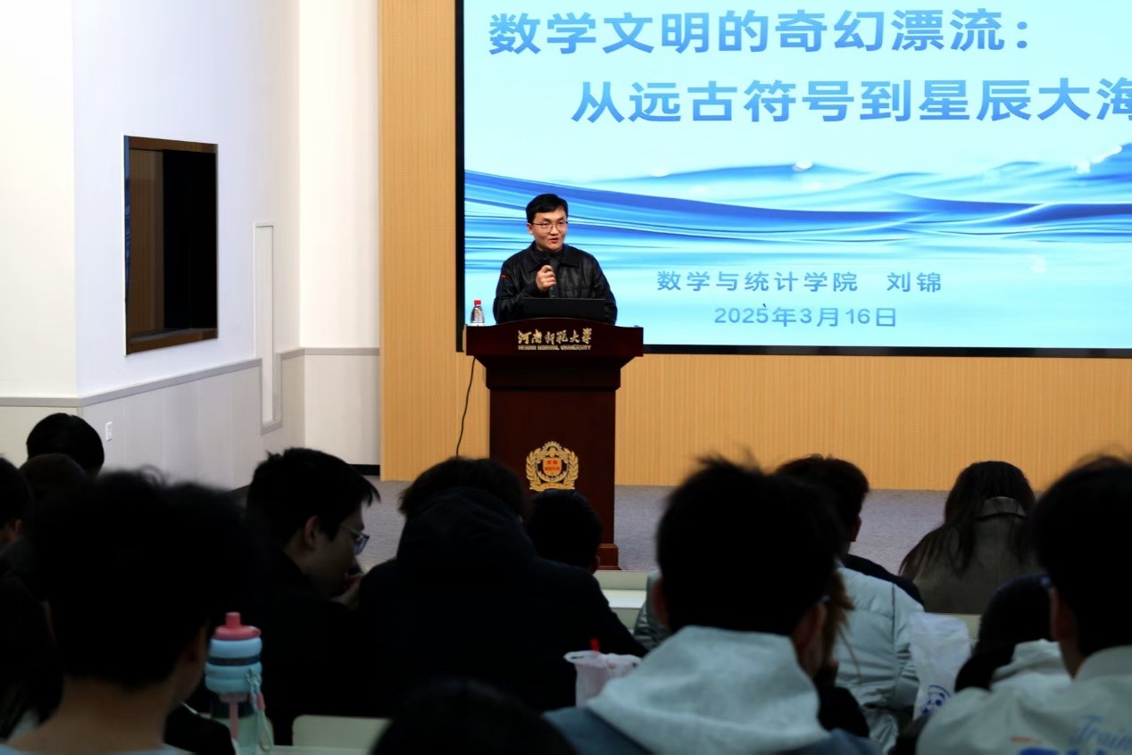 为弘扬数学文化,进一步加深学生对数学学科各领域及数学各方面应用的了解,3月16日下午,数学与统计学院于万人餐厅三楼树蕙堂开展数学文化科普讲座。数学与统计学院研究生导师刘锦受邀主讲,师大学子积极参与。