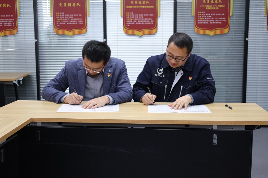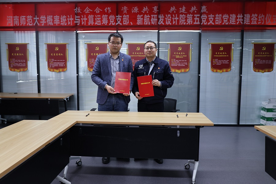 近日,伟德官网下载苹果版数学与统计学院概率统计与计算运筹党支部与新乡航空工业(集团)有限公司研发设计院第五党支部,成功举行党建共建签约仪式,开启了党建引领下产学研深度融合的崭新篇章。新乡航空工业(集团)有限公司研发设计院第五党支部书记李包承、组织委员陈坤朋、伟德官网下载苹果版数学与统计学院党委书记姜良、党委副书记王岩、概率统计与计算运筹党支部书记崔鲁宾等出席仪式。