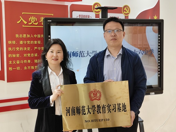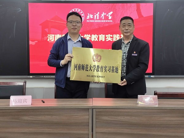 马迎宾表示,教育实践基地是师范生成长“第二课堂”,希望双方要达成协同育人共识,共同提高师范生教育实践质量,保留、夯实、巩固“三字一话”等师范生教学基本功,增强师范生职业素养及综合素质。同时,马迎宾对同学们表达了殷切的期望,希望师范生们在真实教学场景中学会适应角色、学会师生沟通、学会解决问题,在实习过程中重视锻炼机会,在学习过程中认真积累经验。随后,马迎宾代表学校与焦作市第二十六中学、北清中学进行了签约、授牌。