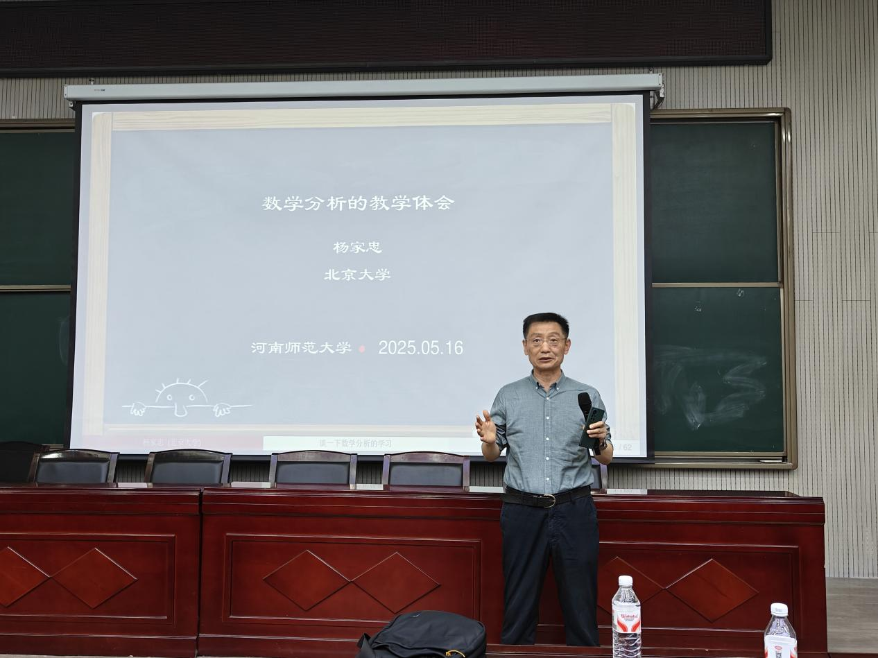 5月16日下午,应数学与统计学院邀请,北京大学杨家忠教授为学院师生作题为“谈一下数学分析的学习”的报告,青年教师和本科生100余人参加此次报告。报告会由数学与统计学院院长黄广月教授主持。