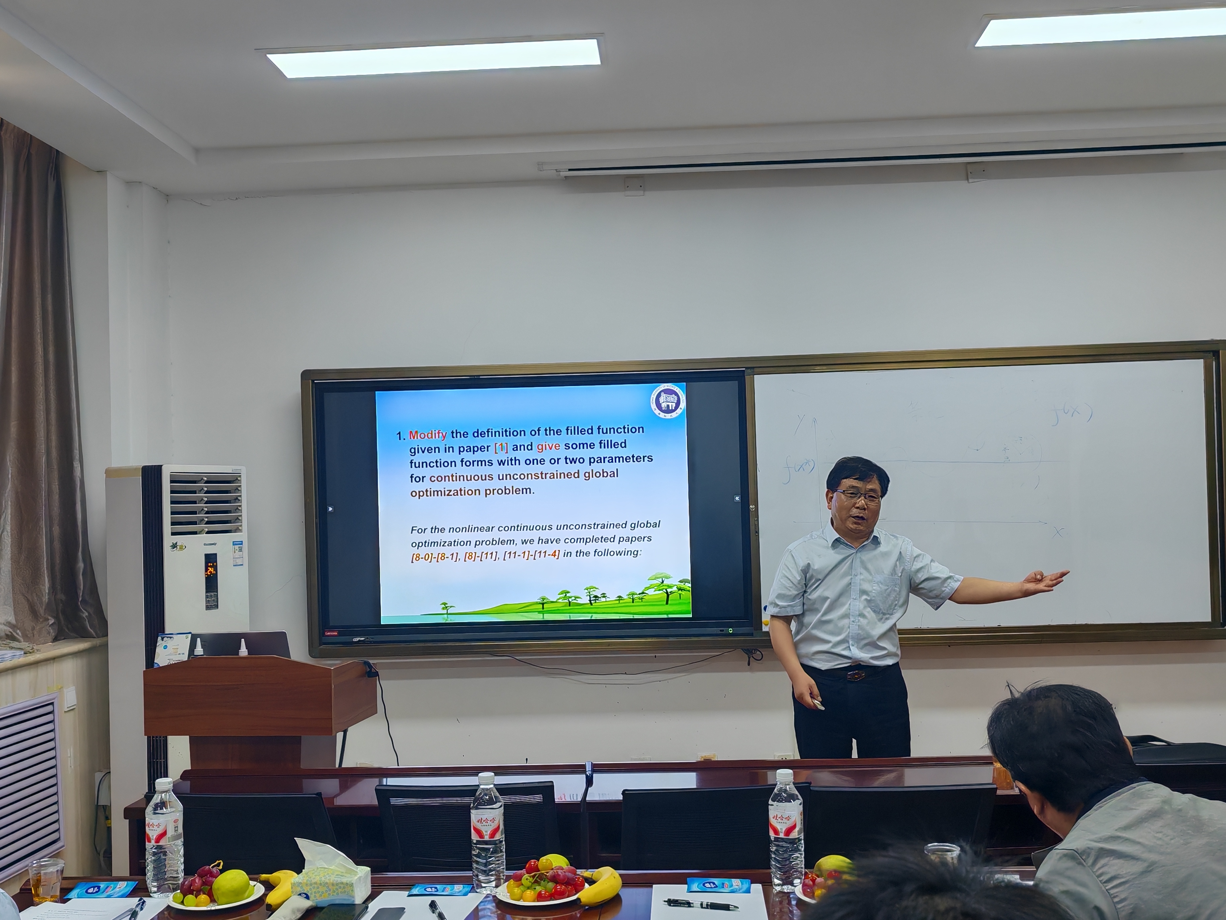 5月20日,应数学与统计学院邀请,河南科技大学尚有林教授做客“牧野格致”讲堂为学院师生作题为“A new parameter-free continuously differentiable filled function algorithm for solving nonlinear equations and data fitting problems”的学术讲座,学院相关研究方向师生参加此次讲座,裴永刚主持。
