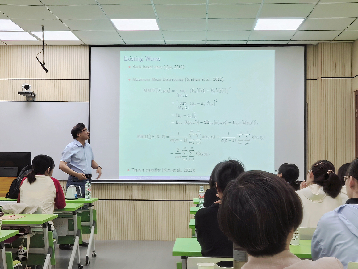 5月26日上午,北京工业大学杜江教授作了题为“Composite Kernel Two-Sample Tests”的学术报告,学院统计系教师、研究生和部分高年级本科生共同聆听本次报告。