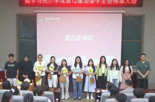 新一届学生会成员向学长学姐献上鲜花,表达诚挚谢意;学长学姐为新任学生会干部颁发聘书,饱含深切厚望。