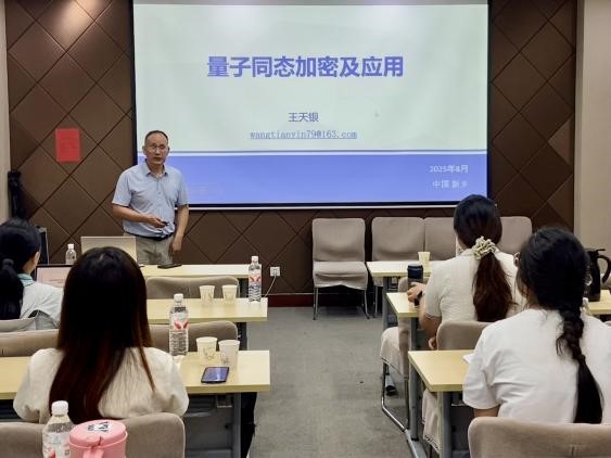 8月13日下午,应数学与统计学院邀请,洛阳师范学院王天银教授在数学南楼103室为学院师生作题为 “量子同态加密及应用” 的学术报告,学院相关专业教师和研究生参加了此次报告。此次报告由杜蛟副教授主持。