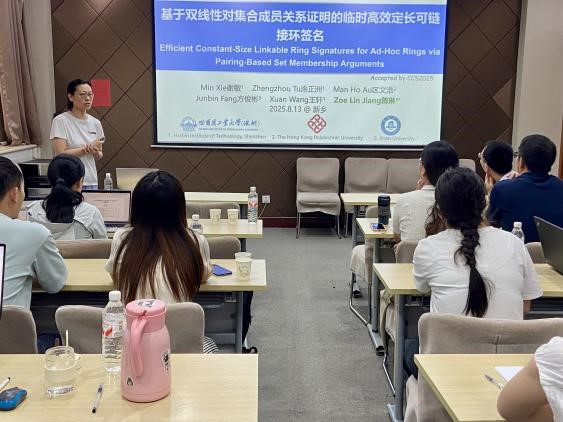 8月13日下午,应数学与统计学院邀请,哈尔滨工业大学蒋琳教授在数学南楼103室为学院师生作题为“基于双线性对集合成员关系证明的动态环高效固定长度可链接环签名方案” 的学术报告,学院相关专业教师和研究生参加了此次报告。此次报告由杜蛟副教授主持。
