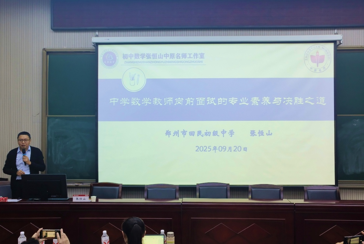 报告伊始,张恒山副校长回顾了自身作为“中原名师”的成长经历,为在场师生提供了宝贵的职业发展启示。随后,他围绕“为什么要进行结构化面试”“结构化面试的内容与标准”“数学教师面试所需的专业素养”以及“数学教师面试的制胜之道”四个方面,系统阐述了中学数学教师在岗前面试中应具备的核心素养与表现策略,并强调了扎实的学科功底与出色的临场发挥在实现入职目标中的重要作用。