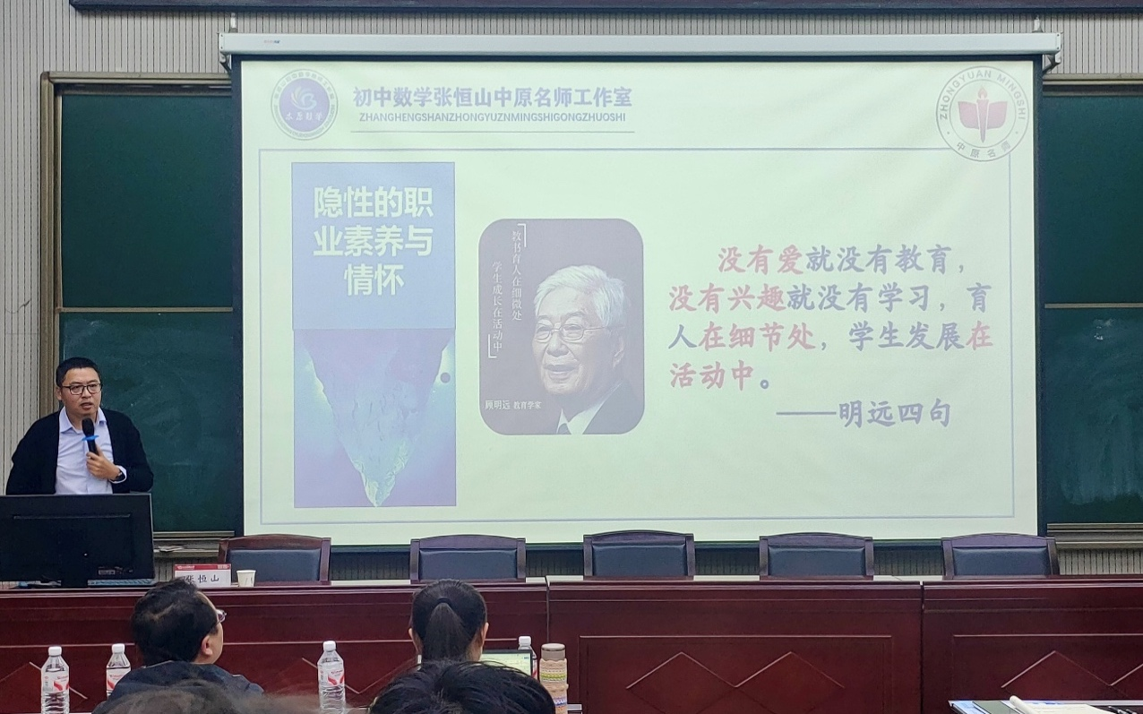 9月20日上午,应数学与统计学院邀请,郑州市回民初级中学副校长张恒山在学院一楼报告厅作题为《中学数学教师岗前面试的专业素养与决胜之道》的学术报告。本院相关专业100余名师生及河南科技学院10余名师生共同参加了此次活动,报告由刘金海老师主持。