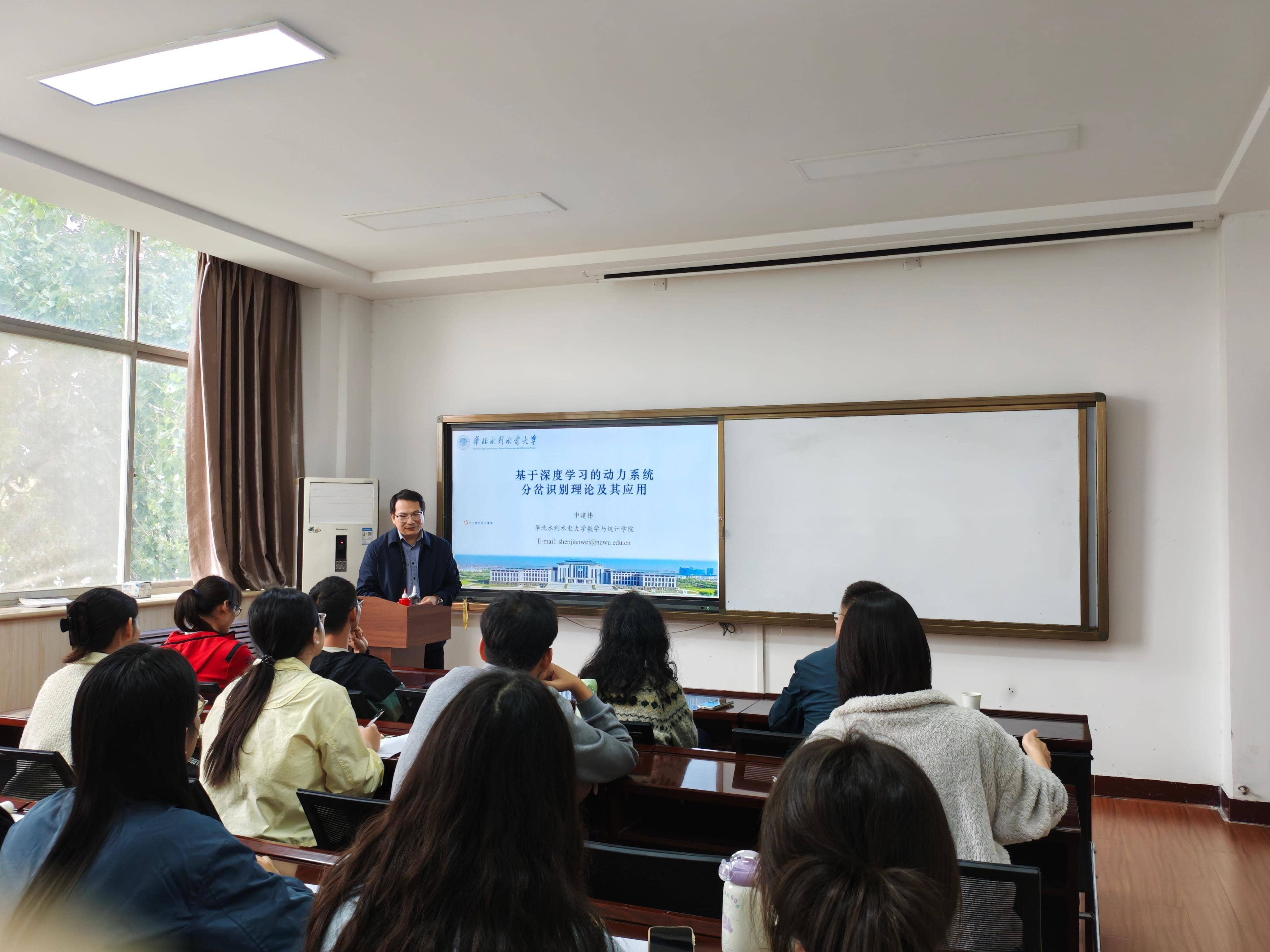 2025年9月22日下午,应数学与统计学院邀请,申建伟教授在数学北楼404作了题为“基于深度学习的动力系统分岔识别理论及其应用”的学术报告。学院相关专业教师、研究生参加了此次报告。报告会由杨新光教授主持。