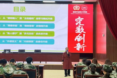 程文娟以“心灵‘进化’,从‘新’开始”为主题,从认知、情感、社交、自我四个维度展开讲解。她结合数学专业学习特点,深入讲解了元认知和情绪的相关知识,引导新生建立科学的学习认知、正确认识情绪和学会管理情绪。针对新生关注的室友关系、自我探索等问题,她阐述了人际关系的边界理论和非暴力沟通四步骤,并带领学生们绘制未来自我画像,引导其明确自我定位与成长方向。她特别介绍了学校心理健康教育中心的地址、联系电话及服务内容,强调了在面对心理困境时寻求专业帮助的重要性,希望同学们在有心理困惑时及时通过电话或网络向心理健康教育中心寻求帮助。