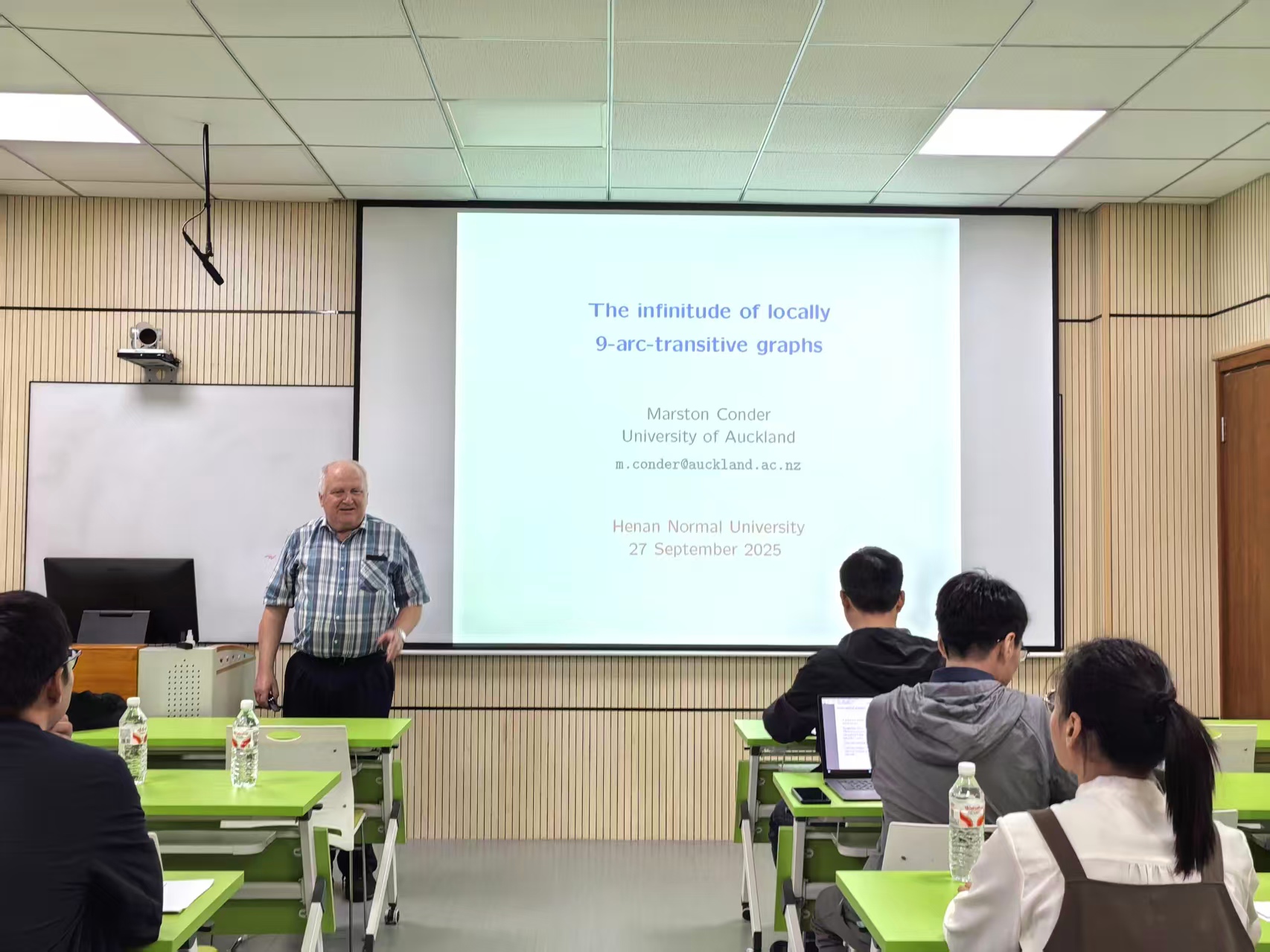 9月27日,应数学与统计学院的邀请,新西兰奥克兰大学杰出教授Marston Conder为学院师生作题为“The infinitude of locally 9-arc-transitive graphs”的学术报告,相关专业教师及研究生20余人参加了此次报告。