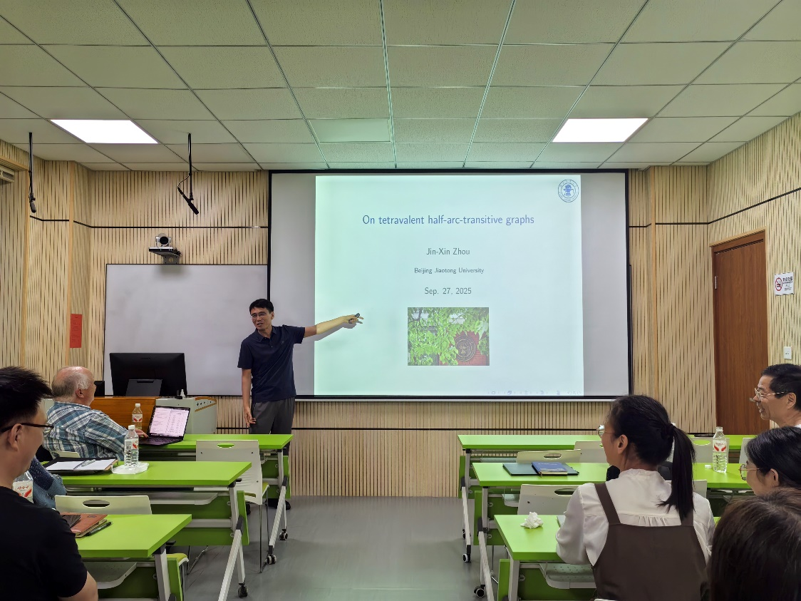 9月27日,应数学与统计学院邀请,北京交通大学周进鑫教授为学院师生作题为“On tetravalent half-arc-transitive graphs”的学术报告,相关专业教师和硕士研究生参加了此次报告。