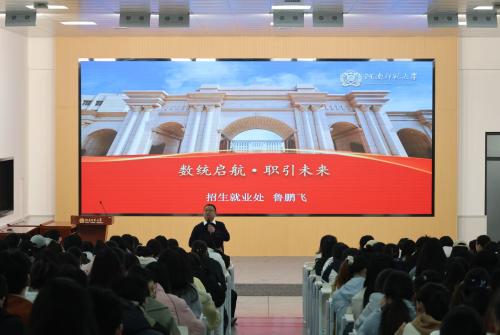 为扎实推进2026届毕业生就业工作,帮助学生提高就业综合素质和竞争能力,10月26日上午,数学与统计学院于万人餐厅三楼树蕙堂开展2026届毕业生就业指导讲座,校网上伟德平台处副处长鲁鹏飞受邀主讲,院党委副书记王岩出席,2022级全体师生参加。讲座由院党委组织员袁刚主持。