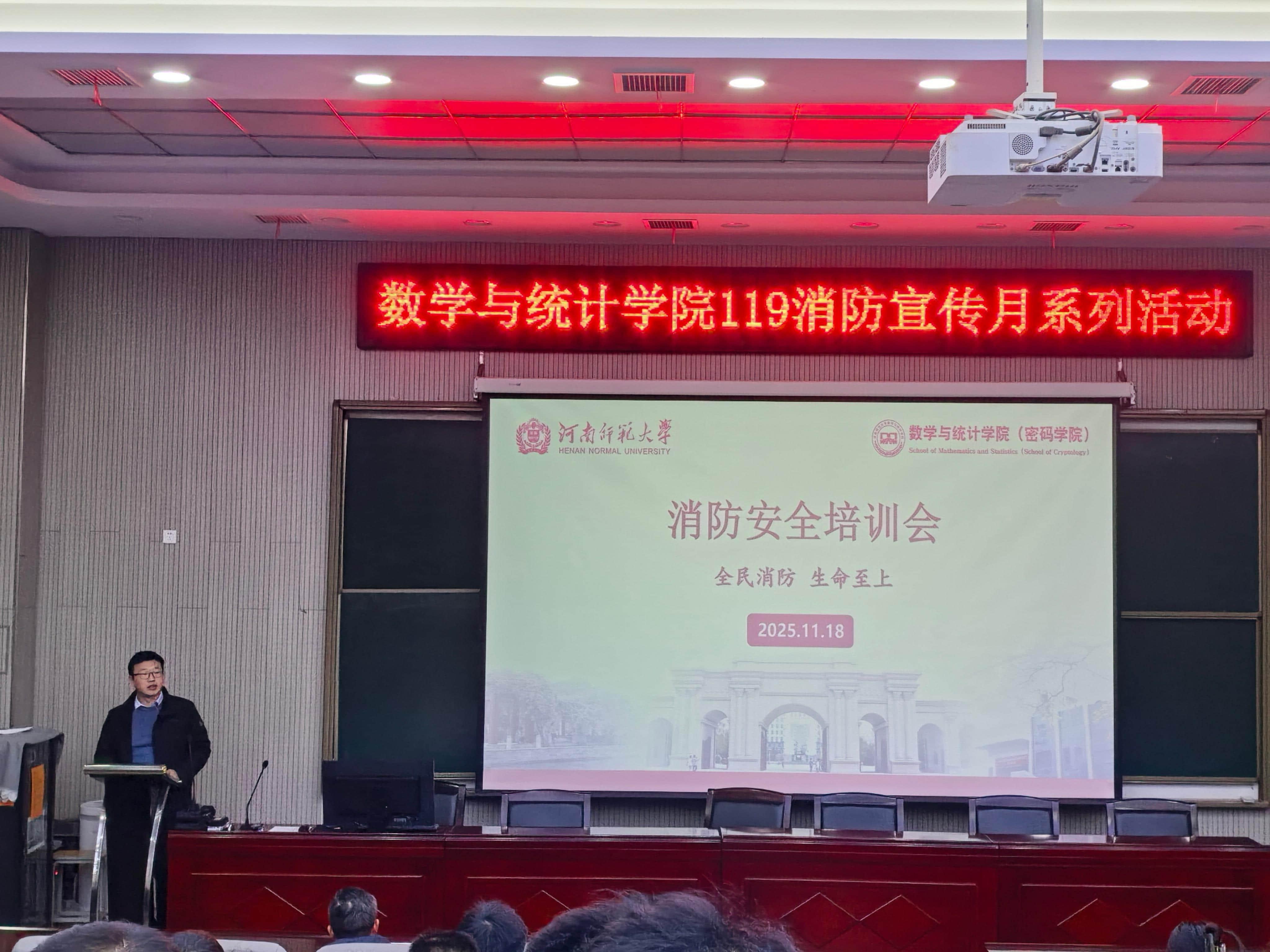 为进一步做好消防安全宣传教育工作,全面增强师生消防安全素质和应急处突能力,11月18日下午,数学与统计学院(密码学院)在学院报告厅举办消防安全培训会。院领导班子成员、全体教职工参加,会议由副院长孙晓主持。