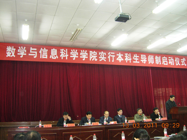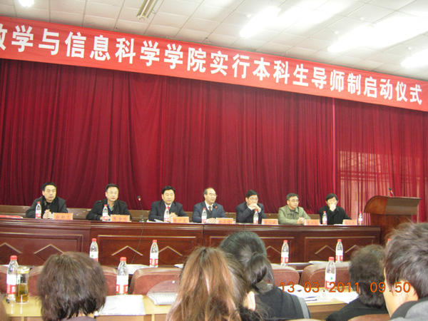 3月13日上午,数学与信息科学学院在学生处多功能报告厅举行本科生导师制启动仪式。我校副校长徐存拴,各相关职能部门负责人和学院领导及全体受聘导师和10级同学参加了此次仪式。仪式由学院院长李兴校主持。 仪式上,院党委副书记胡松振宣读了数学与信息科学学院本科生导师制领导小组名单和《数学与信息科学学院本科生导师制实施方案》。副院长柴新宽宣读了导师名单和学生分组名单,并介绍了与会导师。导师代表 副校长徐存拴首先肯定了数学学院良好的教风、学风、院风,并对本科生导师和与会学生寄予厚望,希望将本科生导师制扎扎实实进行,确保此项体制真正落到实处,发挥实效。 会后,各位导师还与学生进行了第一次面对面的交流。据悉,数学与信息科学学院学院今后还将为每一届新生配备导师。 数学学院实行“大学生导师制”旨在强化教师在教书育人过程中的主体作用,推动师生间教与学的有效互动,实现师生关系的本质回归,构建良好的人才培养环境。该项制度由院党委牵头实施,成立了院党委书记、院长任组长,主管教学工作的副院长,院党委副书记任副组长的工作领导小组。实施方案确定了导师的任职条件和工作职责,制定了导师制工作管理、评估条例以及导师的待遇,要求各位导师要加强对学生的思想引导、专业辅导、生活指导、心理疏导,教育引导,把思想教育与专业教育、课堂教育与课外教育、共性教育与个性教育、严格管理与人格感化结合起来,充分发挥教师教书育人的作用,同时配合辅导员做好大学生思想政治教育工作和管理工作。 (数学与信息科学学院 张瑾 苗山根) |