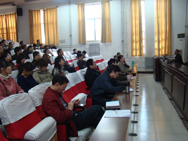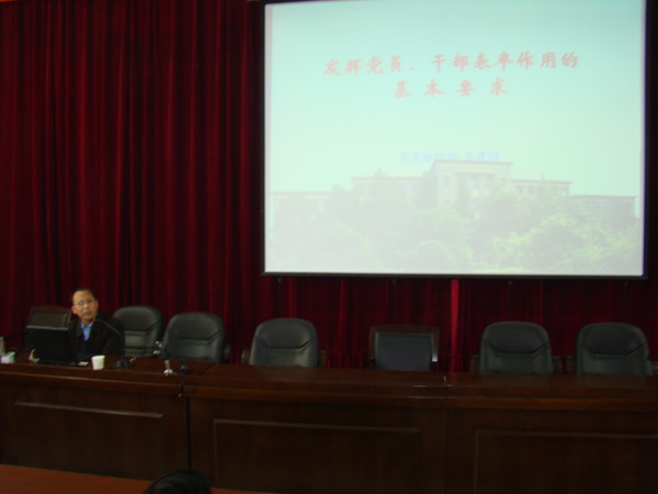 为加强学院党员干部队伍建设,促进学院党员干部先锋模范作用及表率作用更好发挥,使“创先争优”活动进一步走向深入,4月12日下午,学院党委邀请校党委组织部部长张建国在学院学术报告厅为学院党政领导班子、科级以上干部、教师党员、研究生党员作了一场题为《有效发挥党员干部模范作用的时代要求》的报告。报告会由院党委书记焦争鸣主持。 张建国部长从坚定的理想信念、高尚的道德品质、深厚的文化底蕴、扎实的业务技能、良好的团队意识、执着的敬业精神、超前的战略思维、灵活的应对能力、亲和的人脉关系、自觉地模范意识十个方面阐述了发挥党员干部表率作用的基本要求。张部长应用大量翔实的案例,结合风趣幽默的语言,多方面、多角度的指出了数学学院党员干部作用发挥情况的现实状况、学院优势与不足,并提出了时代的要求。报告联系实际,深入浅出,不时引起现场听众的阵阵掌声。 焦争鸣书记希望学院全体党员干部领会报告的内涵,切实发挥自己的表率作用,为学院事业再创新的辉煌。 (数学学院 张瑾) |