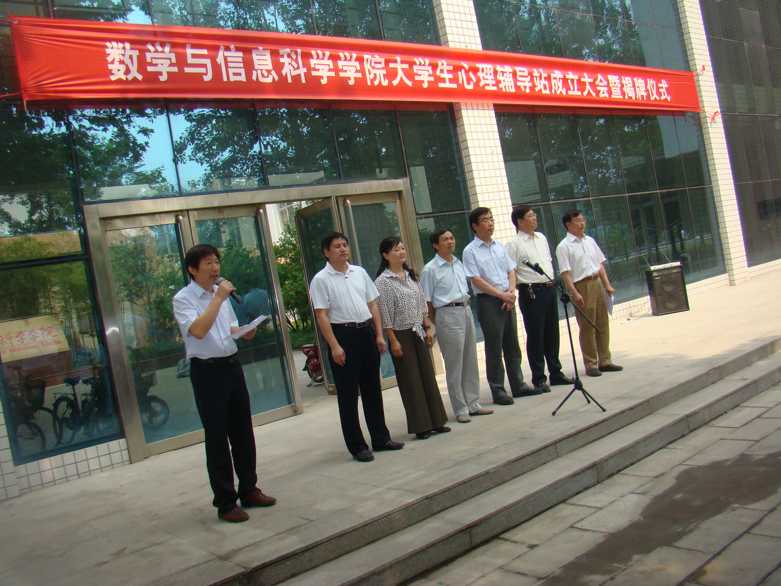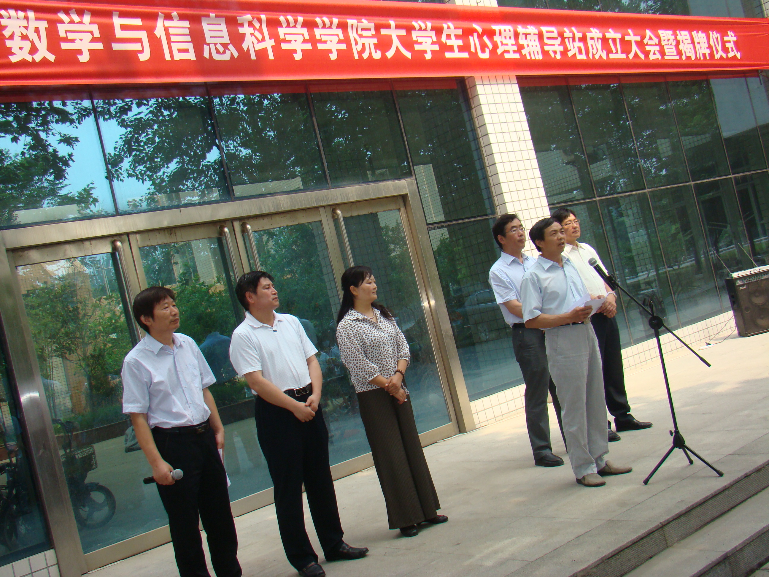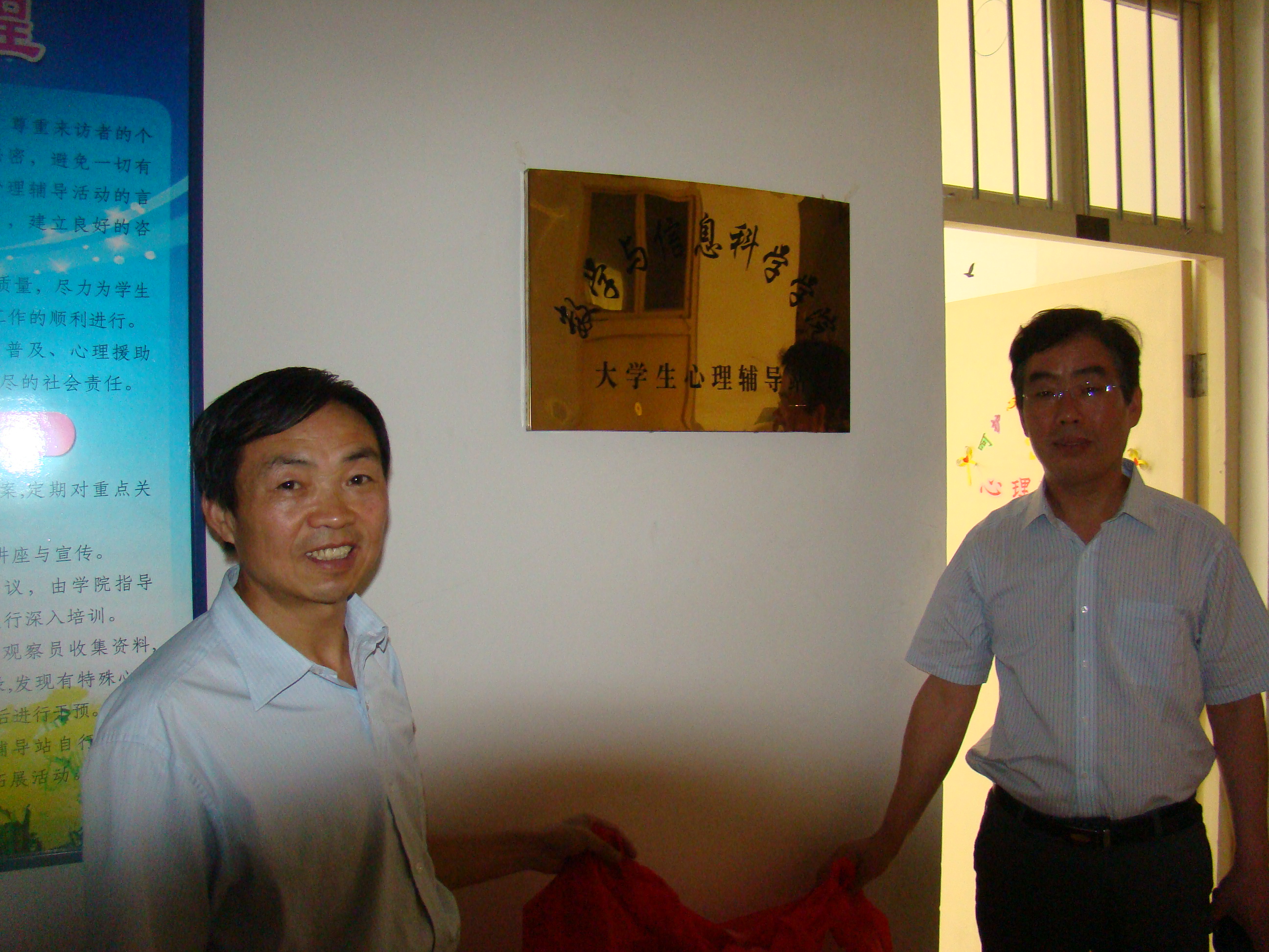 院党委书记焦争鸣介绍了大学生心理辅导站成立规划情况和学院今后加强大学生心理健康教育的工作安排。学生处张向站处长为取得国家心理咨询师证书的辅导员和一线教师代表颁发了指导教师聘书。 在热烈的掌声中,王海旺副书记和孙先科副校长共同为数学与信息科学学院大学生心理辅导站揭牌,标志着我校首个二级心理辅导站正式成立!王书记在揭牌仪式上发表讲话,他对二级心理辅导站的成立表示祝贺,充分肯定了二级心理辅导站的成立对学校学生心理健康工作的重要推动作用,并指出,二级心理辅导站的建立,是完善学校、学院、班级、宿舍的校园四级心理健康网络体系的一大举措,体现了以学生为本的现代教育理念,它既是为学生解决心理困惑的机构,也是在新形势下学生思想政治工作向深层次延伸的重要载体,为大学生的健康成长搭建了一个“答疑解惑、优化心理、促进成长、构建和谐”良好平台。王书记随后在实地查看指导学院大学生心理辅导站办公地点时指出,希望学院进一步加强与校大学生心理健康教育中心的联系,进一步完善二级心理辅导站的硬件软件建设,规范相关工作制度和人员安排,努力把大学生心理辅导站建成一个重要的信号站——心理上出现问题的同学能尽早发现和干预;一个出色的互助站——心理上需要帮助的同学能得到抚慰和呵护。 大学生心理辅导站是数学与信息科学学院落实学校部署,促进大学生心理健康工作的积极尝试,是学院深化“助人自助”的心理工作理念,完善学院心理健康工作体系和运行机制,培养学生良好心理品质和健全个性的重要举措。 (数学学院 苗山根)