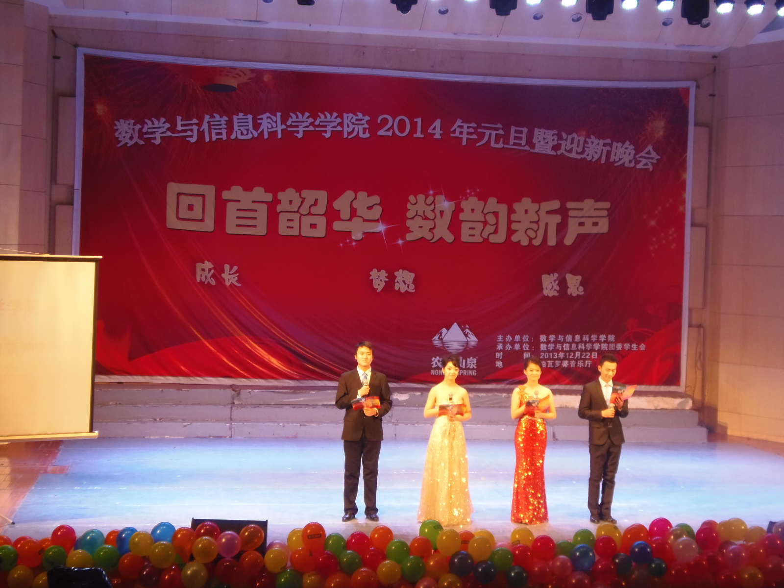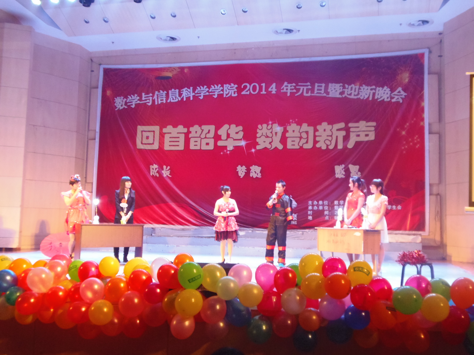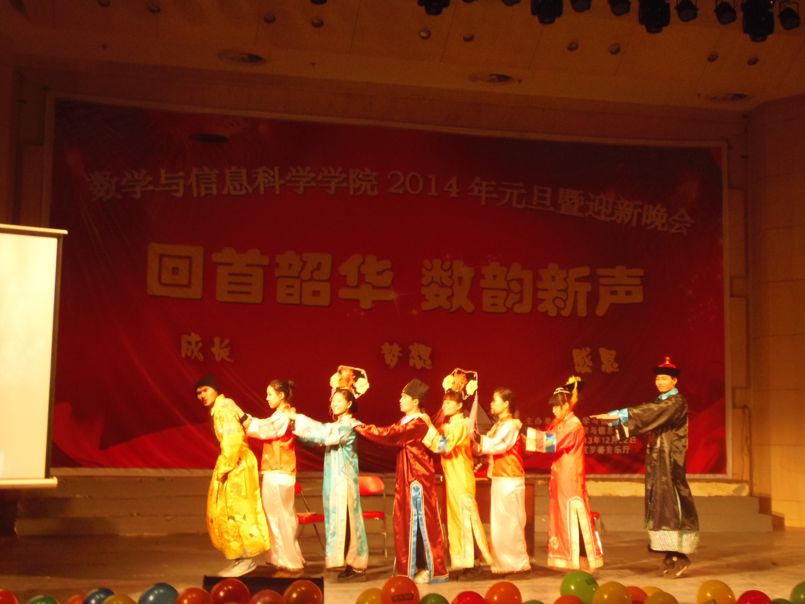 回顾过去,激情澎湃,展望未来,豪情满怀。12月22日晚,数学与信息科学学院在帕瓦罗蒂音乐厅举办以“回首韶华、数韵新声”为主题的2014年元旦暨迎新晚会。校医院院长岳桂英,数学与信息科学学院院长、博士生导师李兴校,院正处级调研员焦争鸣,院党委书记刘文安,宣传部副部长包晓光,副院长左红亮,副院长苗雨,院党委副书记李富杰,学院科级干部、各年级辅导员与500名学生共同观看此次晚会。 院学生会成员带来的清新可爱的牛奶舞拉开了整场晚会的序幕。晚会融歌曲、舞蹈、相声、小品、朗诵等多种节目形式为一体,精彩纷呈。节奏欢快的英文歌曲《Eenie Meeine》点燃了全场观众的热情;古今结合的潮流小品《甄嬛传》让晚会穿越到清朝,古典之中透漏着顽皮,幽默之中散发出严肃,引人捧腹;热情洋溢、婀娜多姿的新疆舞蹈《新娘》让现场观众感受到新疆姑娘独特的魅力,给观众带来一场精彩的视觉盛宴。随后,李兴校老师的独唱歌曲《敢问路在何方》豪迈奔放、激情澎湃,将现场气氛推向高潮。临近尾声,节目也越来越精彩,不同版本的相声表演《论捧逗》引人捧腹,另类相亲节目《非诚勿扰》以诙谐的语言、搞笑的肢体动作抓住在场观众的眼球。晚会在合唱歌曲《我相信》中圆满落幕。 此次晚会演绎了新学子加入学院后如娇阳般灿烂多姿的青春风采,展现了数学与信息科学学院的风华气韵。新的一年,我们将共同构建和谐奋进的数学与信息科学学院,打造更加美好的明天。 晚会视频地址:http://v.youku.com/v_show/id_XNjU1NTc0NDM2.html (数学与信息科学学院 张瑾 上官颖敏) |