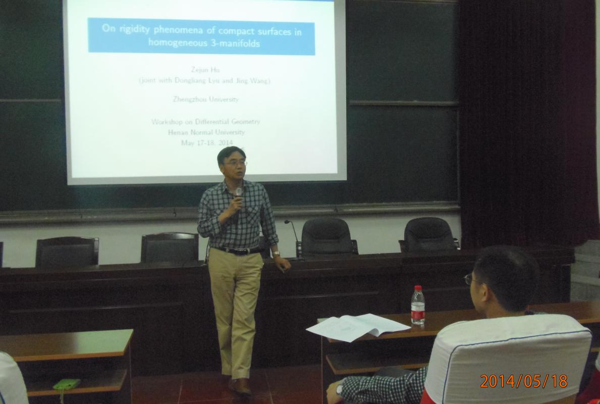 5月17日至18日,“河南省微分几何2014年学术研讨会”在数学与信息科学学院报告厅举行。本次研讨会由郑州大学数学与统计学院副院长胡泽军教授和伟德官网下载苹果版数学与信息科学学院院长李兴校教授共同主持。来自郑州大学、河南大学、伟德官网下载苹果版和河南科技大学的微分几何专家及相关的博士、硕士研究生共30余人参加了研讨会。胡泽军教授、李策策博士和曹林芬副教授等先后做了学术报告。这次会议旨在讨论微分几何的新进展和新动向,提高河南省微分几何研究的学术水平及促进交流。