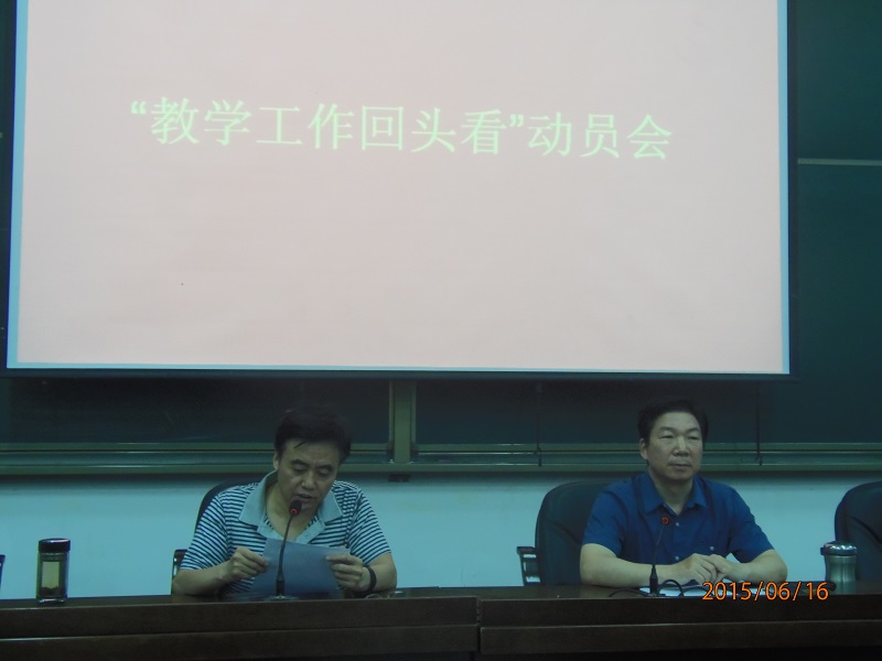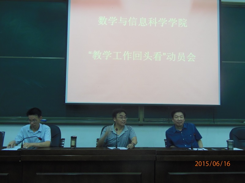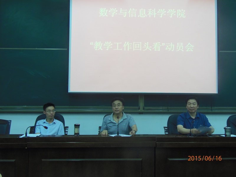 6月16下午,数学与信息科学学院“教学工作回头看”动员会在院多功能报告厅隆重举行。数学学院党政领导、全体教职工参加了此次会议。会议由数学与信息科学学院院长李兴校主持。 院党委书记刘文安作了召开“教学工作回头看”的动员报告。刘书记从我院近年来引进人才的数量、学历、学缘结构形成的“既老又新”院情和教学工作中出现的一些问题出发,指出召开“教学工作回头看”工作会议,加强师德师风建设的必要性与迫切性。刘书记以《教育部关于建立健全高校师德建设长效机制的意见》、《高等学校教师职业道德规范》等相关文件为依据,深入浅出地阐述了教师与国家、学校、学生的关系,高校教师肩负的神圣使命,号召我院年轻教师传承数学学院优良传统,遵守职业道德规范,提高师德师风标准。与会教师认为,刘书记的报告不仅是一场成功的动员报告,更是一堂关于师德师风建设的高水准党课。 教学院长左红亮报告了“教学工作回头看”的具体实施方案。左院长从师德专题、教学技能培养、教学管理、制度完善、学风建设五个方面详细介绍了实施“教学工作回头看”的具体方案,指明今后一个时期加强和改进本科教学工作的主要举措,具体包括:加强师德师风建设,提高教师的责任心和职业道德水准;对教学规章制度进行修订、完善、补充与优化;加强教学目标管理,明确学院和教研室两级分工;提高教研室经费补助,强化教研室职能,规范(同头课)教学大纲与进度,恢复过去的教材讨论。 此次教学工作会议是我院落实我校“第四届教学工作会议”精神,推进教学改革深入进行的重要举措,达到了统一教学思想、转变教育观念、推进教学改革、提高教育质量的目的。