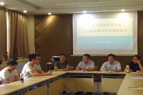 为深入了解学生对学院各项工作的意见和建议,更好地建设和发展数学与信息科学学院,5月22日下午,我院于院103教室举办2017届考研学生代表座谈会。党委书记刘文安、院长苗雨、副院长黄广月、副院长张瑾、团委副书记吴小林出席了本次会议。2017届准研究生代表积极参与此次会议。 大会伊始,张瑾老师就此次座谈会的流程安排和会议主题作了详细介绍。随后,在场学生踊跃发言,各自结合自身情况对我院的建设与发展提出建议,并将建议总结归纳为两个方面。在学习方面,学生根据考研时所遇到的学习问题建议学院更加合理地安排课程标准及部分选修课的学习顺序;提议老师在传授学生本学科知识时,将各学科的知识融会贯通,以便于学生更好的理解掌握。在班级管理方面,部分学生代表建议学院应减少各班的人数以便规范化管理。学生表示这样不仅利于协助年级辅导员的管理工作,而且有助于班级同学和谐相处;此外,学院可以将优秀学生分离出来重点培养,从而提高我院考研学生的能力。 最后,我院领导对学生提出的问题进行详细的回复并要求相关部门进一步完善管理机制,加强服务保障,为我院学生的学习生活提供更加有力的支持。同时,苗雨院长告诫2017届准研究生,“无论今后就读于何所高校,都应该朝着自己的方向去奋斗,刻苦学习,坚持不懈,认真做科研,同时肩负起师大的荣辱,待学业有成回到师大继续建设和发展我院”。刘文安书记也向学生们谈到,读研是我们的选择,而在将来的生活学习中,人生还有很多岔路口,面临许多选择,我们要提前做好目标规划,不断坚持和完善,才能做到最好的自己,希望我们的学生们能够做最好的自己。 整个座谈会气氛轻松活跃,学生讨论热烈,既使学院领导深入了解学生的生活,切实解决学生的问题,也为我院更好地建设、向更高的层次发展打下坚实基础。 (数学与信息科学学院 吴小林 贾雪 顾茜茜) |