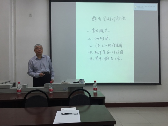 4月20日上午8时,应数学与信息科学学院邀请,北京大学博士生导师方新贵教授在数学学院南楼107会议室做了题为“群与图的对称性”的学术报告。学院相关专业教师、研究生等40余人参加了报告会。报告会由学院党委书记刘文安主持。 方新贵教授从群和图的基本概念出发,介绍了群与图及其对称性的概念,并引出这次报告重点讲解的两大类图:Cayley图和陪集图,随后方教授用深入浅出的语言讲解了Cayley图的概念、性质以及其研究的内容,接着从(G,S)-弧传递图入手详细地讲解了如何利用群论的方法构造对称图,方教授还讲解了如何运用拟本原方法构造拟本原G—对称图,最后他提出了自己目前发现的并且日后要继续研究的关于群与图的对称性的若干问题,也为与会人员的研究提供了参考价值。方新贵教授的学术报告由浅入深,同学们深刻了解了群与图的相关知识,大家受益匪浅。会后与会人员踊跃提问,就感兴趣的问题与方教授进行探讨和交流。 简介:方新贵,北京大学教授、博士生导师、“Algebra Colloquium”(代数季刊)编委、“高等理科教育”副主编。曾担任全国高等理科教育专业委员会秘书长、教育部数学与统计学教学指导委员会数学类专业分委员会秘书长、北京大学教务部部长。多年来,方教授一直从事代数与组合方面研究的工作,在群与图的研究中取得了一批有影响的研究成果。承担国家自然科学基金重点项目、面上项目以及省部级教育教学改革项目共计10余项。在群与图的研究方面发表学术论文40余篇,2017年获北京市优秀教育工作者称号,曾获宝钢优秀教师奖、北京市教学成果特等奖(2012年)和国家教学成果一等奖(2014年)等奖项。
