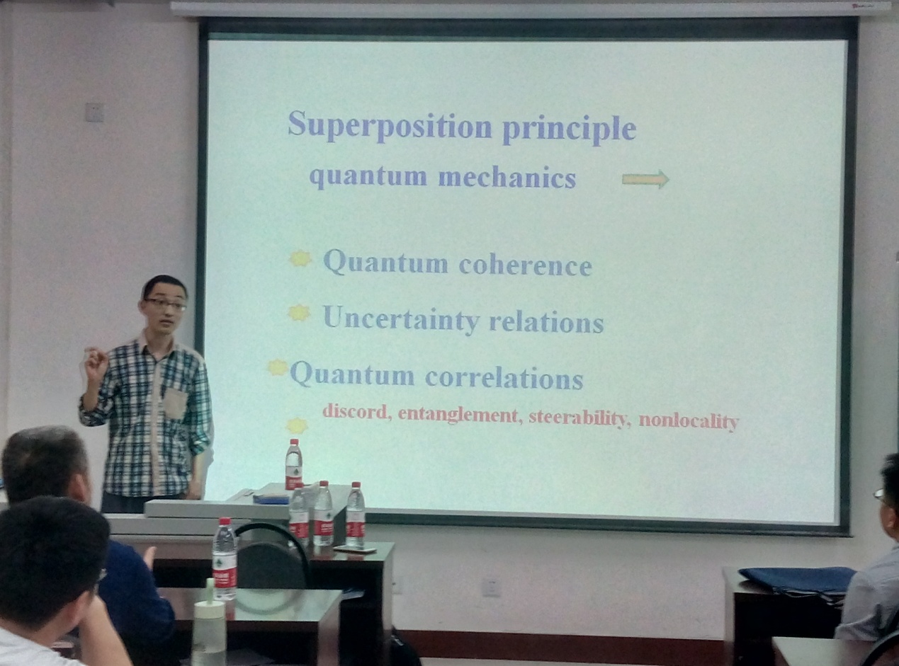 麻志浩指出,量子信息是国际前沿研究方向,量子通信、量子计算机是国际研究热点,而我国最近发射的墨子号量子通信卫星是国内在量子通信方面取得的卓越成就。强调量子力学中一个基本问题是测不准关系,它是科学中一个基本原理,同时在量子信息中有着重要应用。麻志浩以矩阵及变换理论为基础,分析了纯态、混合态、缠绕态的矩阵表示,并就纠缠度量等问题做了详细讲解,并介绍了其在海森堡不确定关系研究上所做的突出工作。