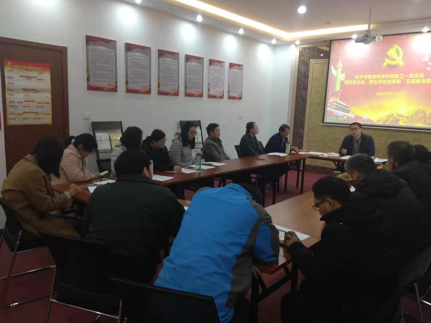 3月8日上午9点,教工一支部在数学北楼二楼党建办公室召开组织生活会,并开展了民主评议党员和“五星级党员”考评工作。支部27 党员除了6 老师党员因有课和产假请假,其余21 老师党员全员参加。 会议由支部书记闫威主持。首先,闫威同志向党员大会大致说了会议的基本要求-加强党的政治建设并观看了相关视频,其后就学习了河南省委十届六次全会的精神,以及共产党支部工作条例,结合工作条例支部书记及委员带头进行了问题查摆并认真的开展了批评和自我批评,接下来支部党员逐一发言,交流思想,总结交流经验,推心置腹,开展批评和自我批评。特别的,高福根同志提出我们支部要提出一些特色性项目,让支部能更加彰显。田长安同志也提出支部工作要主动,提高效率,多开展积极向上的活动。