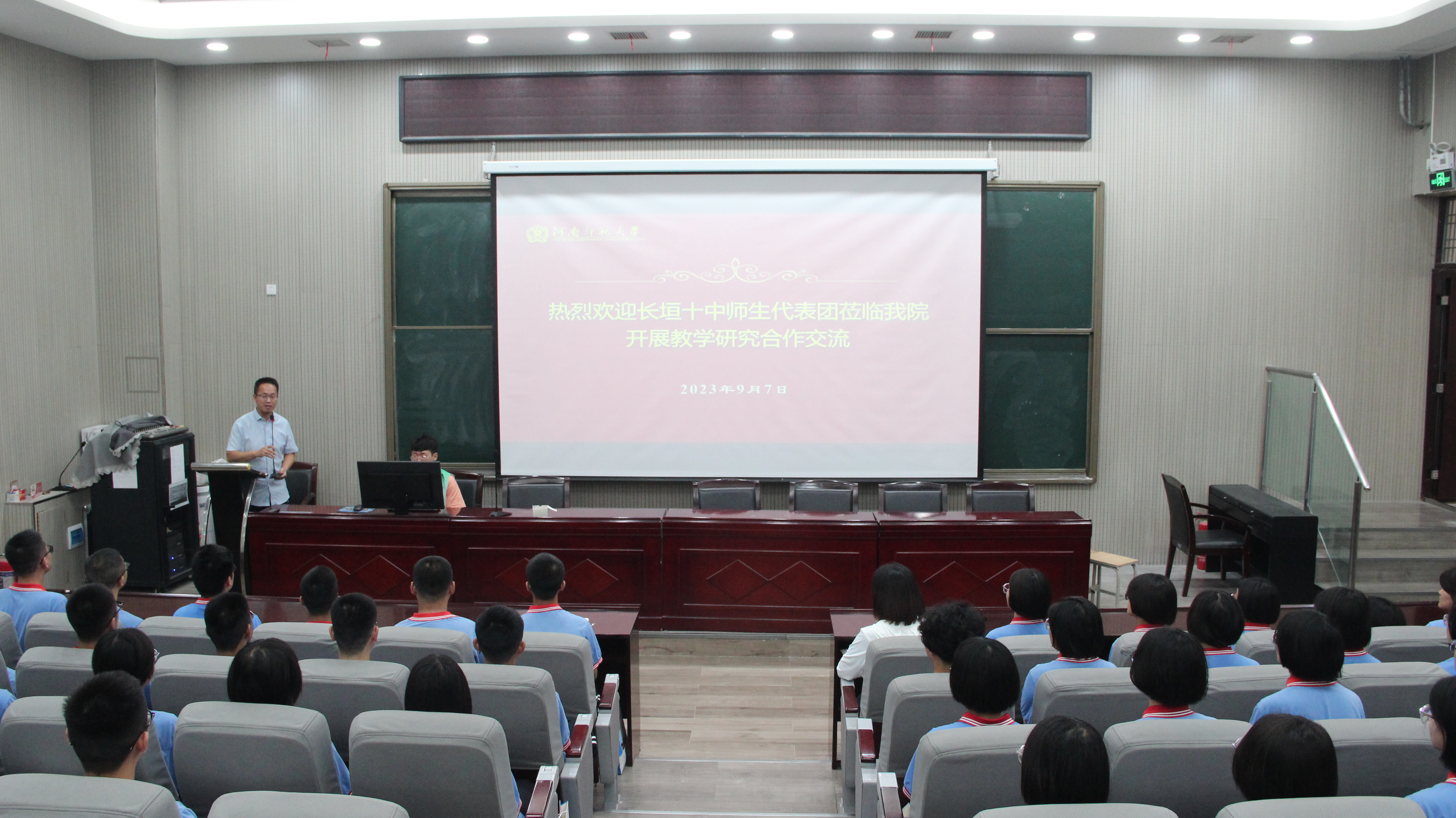 ![]() ![]() ![]() ![]() ![]() ![]() ![]() ![]() ![]() 9 月 7 日上午,长垣市第十中学师生代表50余人走进师大校园,就学生培养、教学研究和教育实践等与我院开展深入合作交流。 欢迎仪式在数学楼报告厅进行,副院长裴永刚主持。院长左红亮教授对长垣市第十中学师生代表表示热烈欢迎和诚挚感谢,并介绍了学院学科发展历程、办学理念和目前的师资力量,鼓励和期望长垣市第十中学优秀学子报考我校。长垣市第十中学副校长冯社芬代表长垣市第十中学对我院教学研究工作给予了高度评价,并表达了与学院深入开展教学研究合作的愿望。 随后,郑燏涛老师讲解了长垣十中师生感兴趣的数学建模,耐心回答现场提出的问题。研究生周纬翀同学分享了自己从高中结识数学建模直至今天真正参与其中的故事。随后学院领导和长垣十中师生在图书馆前合影留念,带领长垣十中师生到图书馆参观。中午一同在万人餐厅二楼就餐后参观了生物资源馆、东西校区和部分教学楼,感受师大校园学习氛围和历史沉淀。活动期间,双方就共同关心的基础教育问题进行了深入讨论,并就如何在教育实践中提高教学质量、提升师范生教学技能和教学研究能力等方面的合作达成了共识。 长垣市第十中学是我校“优秀生源基地、教育实践基地、就业示范基地”,先后获得河南省“文明学校”、“体育达标先进单位”,新乡市“五一劳动奖状”、“高中教育教学突出贡献单位”、“创建学习型组织标兵单位”、“行风建设先进单位”“爱国主义教育示范基地”、“关心下一代工作先进集体”等荣誉称号。 (数学与信息科学学院 于冰冰 高岩锋) |