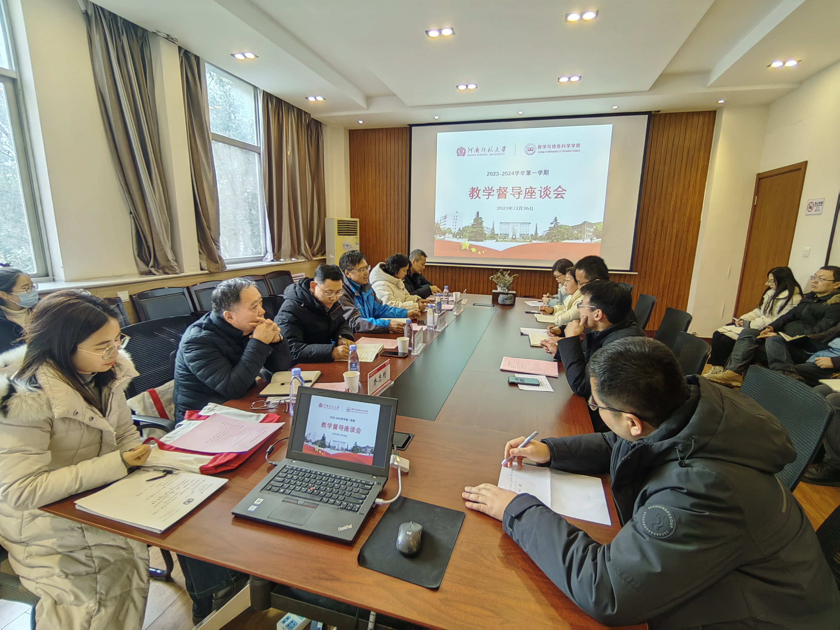 12月26日下午,数学与信息科学学院在数学南楼207召开本科教学督导交流会。学院院长左红亮,教务处副处长姜玉钦,学校督导赵有军、刘玉荣、乔志刚、李柳、麻娜娜,学院同行督导、系主任及新进教师代表、教学秘书和教务员等参加本次交流会。会议由学院副院长裴永刚主持。 裴永刚首先介绍了参会人员,左红亮对教务处领导和校级教学督导老师们的到来表示热烈的欢迎,感谢对学院教学工作的指导和支持。随后,5位校级督导分别对学院课堂教学情况进行反馈,对学院老师敬业精神、教学态度、讲课素养、课堂投入等充分肯定,同时也指出了部分老师课堂教学中板书字体、互动设计、情景导入和课堂小结等具体问题。针对这些问题如何有效解决,学校督导和学院同行督导进行了交流与分享。 姜玉钦发言强调教学督导工作是课堂教学质量和人才培养的重要保障,希望校级教学督导专家全力完成“守底线、提质量”的目标,学校督导和学院同行督导要及时沟通、加强与任课教师的反馈,实现课堂教学精准督导、持续改进和“以导优教”。 左红亮对教务处和学校督导老师对学院教学工作的辛勤付出表示感谢,希望持续关注学院教师,特别是青年教师的成长,多交流,勤沟通,共同为学校的教学工作贡献力量。针对督导所提问题,学院将重点梳理整改,持续改进,对相关教师进行锤炼与指导。 (数学与信息科学学院 李海锋 李沛) |