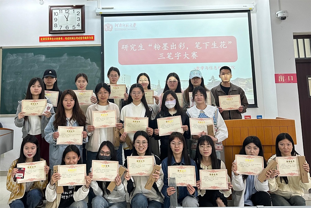为增强学科教学(数学)研究生对书法艺术的热爱,培养学生良好的书写习惯,提高书写技能,数学与信息科学学院举办“粉墨出彩,笔下生花”——研究生“三笔字”书写技能大赛。 本次比赛由钢笔字、毛笔字、粉笔字三个书写项目构成,以字构、运笔、流畅度等方面为准则进行评审。比赛正式开幕,比赛选手间展开激烈角逐。硬笔字书写精彩纷呈,参赛选手各个笔势雄奇,姿态横生,美丽的汉字从笔尖流淌而出;毛笔字书写笔力险劲,挥斥方遒,或潇洒有力、或清秀隽丽,风格多样,不一而足;粉笔字书写唾玉钩银,质直浑厚,参赛选手用心用情地认真书写,力求发挥自己的最佳水平,在一笔一划、一点一捺的书写中,充分展现自身的教学基本功。学生们的扎实功底,将书法艺术之美展现的淋漓尽致。经过激烈的角逐及各位评委老师秉公持正的评审,最终评定比赛结果,本次三笔字大赛圆满落幕。 弘扬民族文化精髓,演绎书法神奇魅力。本次“三笔字”大赛旨在为学生提供展示自我的平台,加强语言文字基本功,弘扬和传承中华民族优秀传统文化。今后,我院将持续推进文化建设,积极鼓励倡导学生参加文化活动,推动我院人才培养改革走深走实。 (数学与信息科学学院 闫梦 李超) ![]() ![]() ![]() ![]() ![]() |