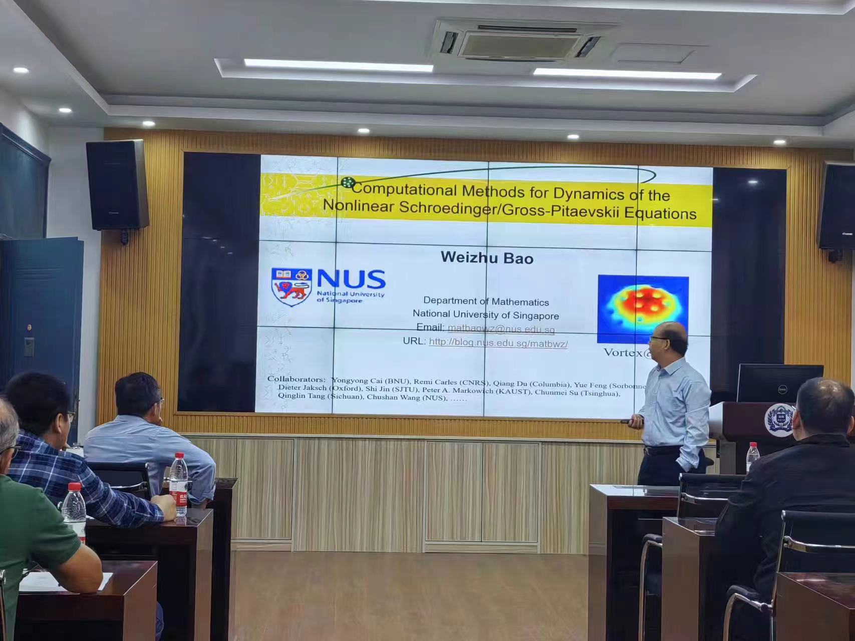 4月30日,应数学与信息科学学院邀请,新加坡国立大学包维柱教授做客百年校庆之“牧野格致”讲堂为学院师生作题为“Computational methods for the dynamics of the nonlinear Schroedinger/Gross-Pitaevskii equations”的学术报告,数学与信息科学学院师生共二十余人参加此次报告。报告由数学与信息科学学院副院长黄广月教授主持。 包维柱教授首先介绍了非线性薛定谔(NLSE),用于模拟玻色-爱因斯坦凝聚 (BEC)问题。随后,包维柱教授讨论了它们的动力学特性,包括时间可逆、时间横向不变、质量和能量守恒以及色散关系。最后,综合比较了求解NLSE的不同数值方法,展示了其团队在旋转BEC问题中模拟量子化涡旋晶格动力学的应用。 报告结束后,包维柱教授就玻色-爱因斯坦凝聚问题的实践动机、实践过程与数值结果等相关问题与台下师生展开深入的讨论和交流。包维柱教授的报告内容丰富,使参会师生对高维统计估计问题有了深刻的认识,受益匪浅。 专家简介: 包维柱,现为新加坡国立大学数学系教授,理学院副院长,新加坡科学院院士、SIAM Fellow、 AMS Fellow,博士毕业于清华大学,曾获冯康科学计算奖,应邀在韩国举行的第26届国际数学家大会上作45分钟邀请报告。包维柱教授长期从事科学与工程计算研究,主要工作涉及偏微分方程数值方法及其在量子物理、流体和材料中的应用。担任SIAM Journal of Numerical Analysis等权威期刊编委。 (数学与信息科学学院 崔鲁宾 周纬翀) |
