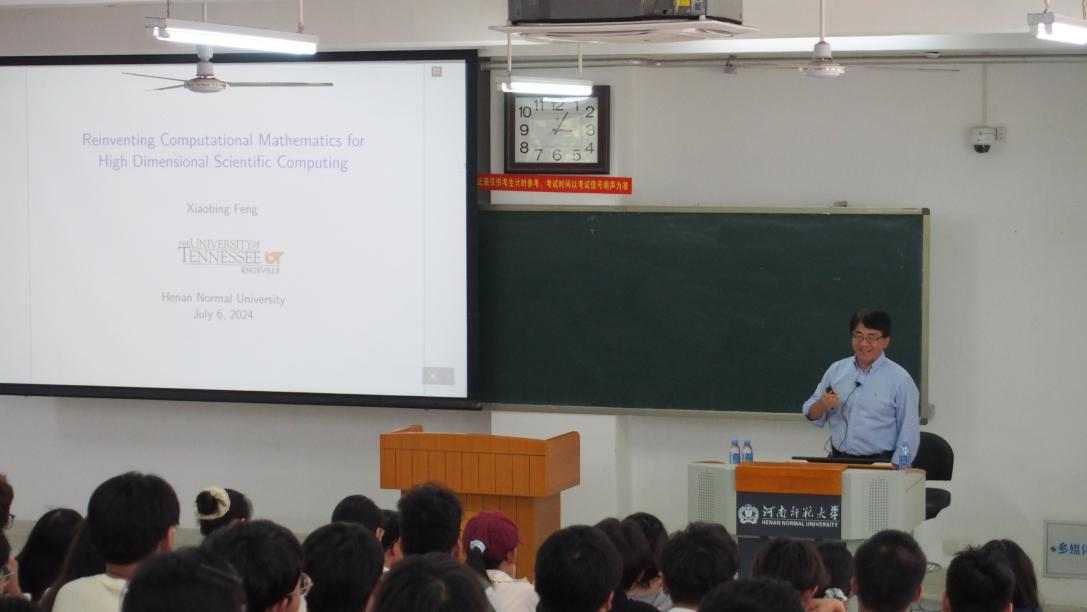 7月6日下午,应数学与信息科学学院邀请,美国田纳西大学凤小兵教授在东综104呈现了题目为《Reinventing Computational Mathematics for High Dimensional Scientific Computing》的专题学术报告。报告由数学与信息科学学院黄广月副院长主持。学院相关研究方向的青年教师,研究生和本科生参加了此次报告。 高维问题源自很多应用背景,例如,具有多特征的图像处理问题;具有高维数据集的数据科学,AI智能,机器学习等。凤小兵教授针对高维数值积分问题,从两个方面对其方法进行研究,其一是对现有方法进行改进,例如多维迭代算法等;其二是提出全新的算法构造,例如基于逼近勒贝格积分的数值积分算法和基于Co-Area格式的数值积分方法;并给出高维的数值算例验证方法的有效性。讲座主要介绍了高维数值积分,以及基于高维数值积分的偏微分方程数值求解,涵盖了科学前沿问题。讲座为在场的师生提供了开阔的科研视角,加深了与会人员对高维问题的理论和实验认识,使与会的青年教师,研究生和本科生受益匪浅。 专家简介: 凤小兵,美国田纳西大学(The University of Tennessee) 数学终身教授,现任数学系系主任 (Department Head)。1983年和1985年分别获西安交大计算数学学士和硕士学位,1992年获美国普度大学(Purdue University)应用和计算数学博士学位, 师从计算数学大师Jim Douglas Jr. 教授。凤小兵教授长期从事线性,特别是非线性确定和随机偏微分方程及其数值解法与算法的研究,并取得了一系列国际领先的成果。在 SIAM Review, SIAM J. Numerical Analysis, Mathematics of Computation, Numerische Mathematik, SIAM J. Mathematical Analysis, Transaction of AMS, Calculus of Variation and PDEs等国际一流专业学术期刊上发表论120余篇。 (数学与信息科学学院 齐文雅) |