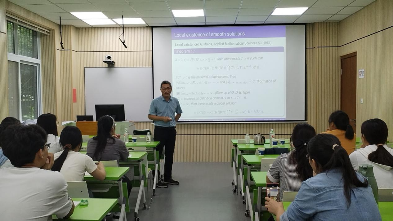 9月28日下午,应数学与信息科学学院邀请,华北水利水电大学博士生导师王玉柱教授做客“牧野格致”讲堂并为学院师生作题为“Global smooth solutions to the compressible Euler equations for Chaplygin gas and related models”的学术报告,数学与信息科学学院师生共二十余人参加此次报告,报告由杨新光教授主持。 王玉柱教授首先从特征值出发给出了双曲方程的定义以及其局部解的基本概念。随后王教授展示了一维情况下分别含有多方气体和Chaplygin气体欧拉方程的结果,同时展示了Majda猜想。最后,王教授从多角度详细分析了三维情况下的含有多方气体和Chaplygin气体的欧拉方程的研究现状以及课题的难度,并展示了他们团队目前在该问题下的研究成果。 王玉柱教授的报告深入浅出,与会师生受益匪浅。报告结束后,王玉柱教授就在场师生提出的问题进行了细致解答,并鼓励研究生同学紧追科研前沿,勇攀科学高峰。 专家简介: 王玉柱,教授、博士生导师、河南省高层次人才、河南省优秀青年科技专家、华北水利水电大学“大禹学者”特聘教授。2010年毕业于上海交通大学数学系,获理学博士学位。主要从事非线性偏微分方程及其应用的研究,在Comm.Partial Differential Equation、J.Differential Equations等期刊上发表论文50余篇。主持国家自然科学基金项目面上项目和青年项目、河南省科技创新杰出青年项目、河南省高校科技创新人才支持计划及河南省高校重点科研项目基础研究专项等项目。主持获河南省科学技术进步奖二等奖和河南省自然科学奖三等奖各1项、参与获浙江省自然科学奖二等奖和河南省科学技术进步奖三等奖各1项。 (数学与信息科学学院 杨新光 杜欣怡) |