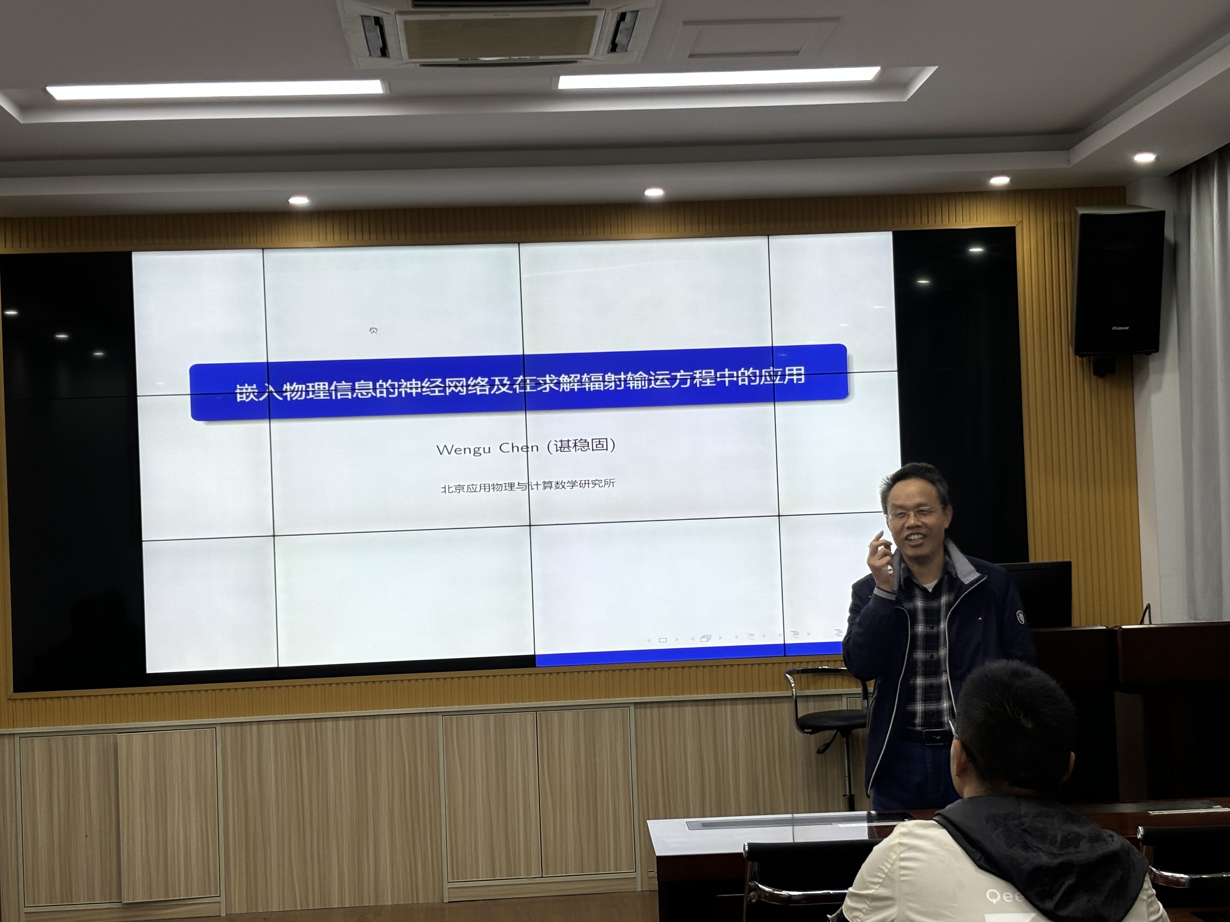10月25日下午,应数学与信息科学学院的邀请,北京应用物理与计算数学研究所谌稳固研究员为我院师生作题为“嵌入物理信息的神经网络及在求解辐射输运方程中的应用”的学术报告。数学与信息科学学院师生二十余人参加此次报告。 谌稳固从实际问题中的非线性偏微分方程出发,结合PINNs来求解辐射输运方程。此次报告首先介绍了Data-driven solutions of PDEs和Data-driven discovery of PDEs;接着给出了频率依赖的辐射输运方程,进一步在假设没有散射的情况下给出灰体辐射输运方程,随后给出空间一维辐射输运的重要基准算例--Marshak波问题;最后给出了时间依赖的非线性灰体辐射输运方程及实验结果。 报告结束后,谌稳固老师对师生提出的相关问题进行了细致地回答。 专家简介: 谌稳固,北京应用物理与计算数学研究所研究员、博士生导师。主要从事调和分析、压缩感知、机器学习、大数据分析的理论及应用研究。在IEEE Transactions on Information Theory, Applied and Computational Harmonic Analysis,Inverse Problems, SIAM Journal on Imaging Sciences, Journal of Machine Learning等期刊发表学术论文80余篇。 (数学与信息科学学院 耿欣欣 李海锋) |