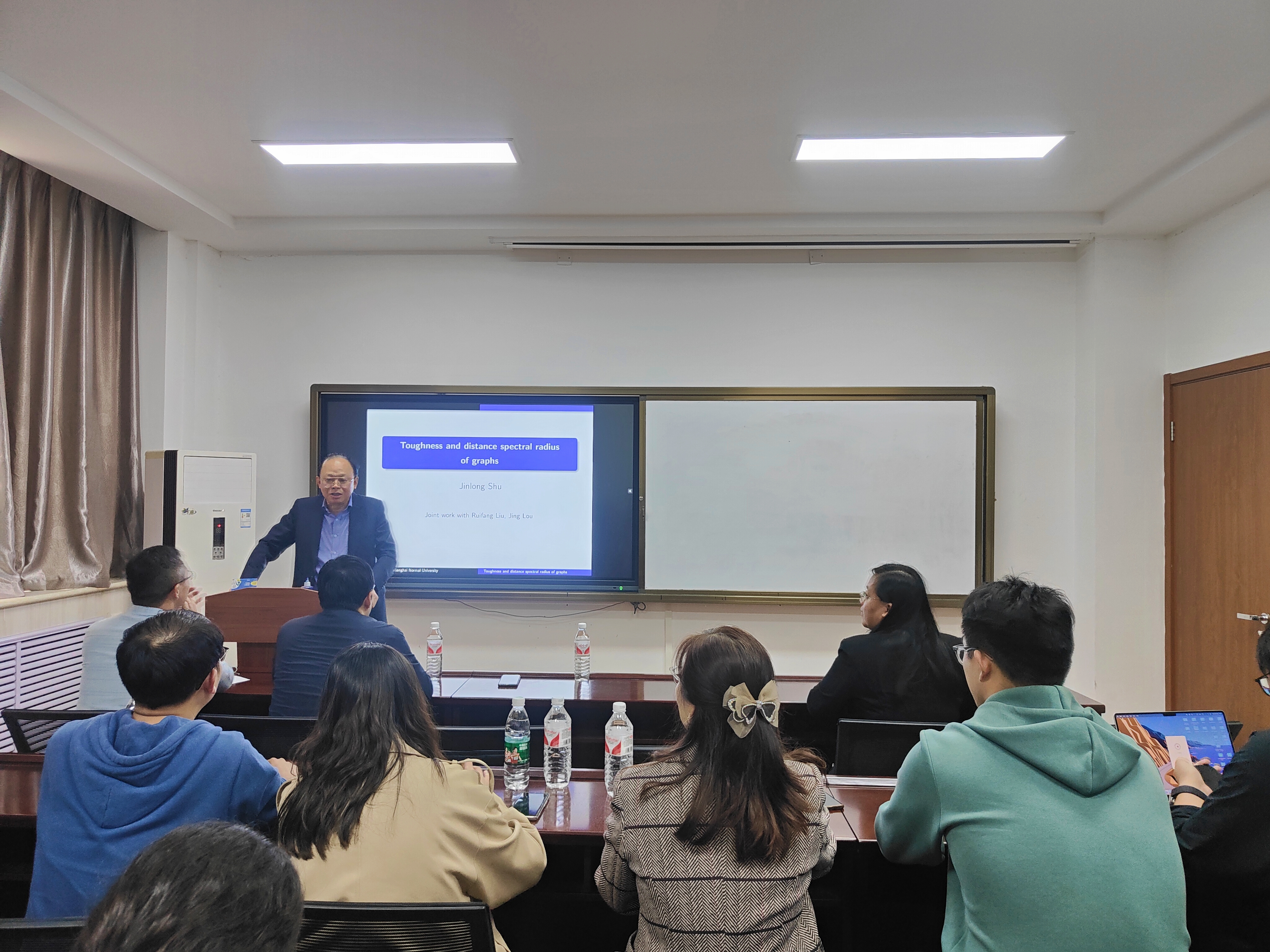 10月30日,应数学与信息科学学院的邀请,上海师范大学博士生导师束金龙教授为学院师生作题为“Toughness and distance spectral radius of graphs”的学术报告,相关专业教师和硕士研究生20余人参加此次报告。 本次报告主要介绍了谱半径的相关研究。束金龙教授首先介绍了邻接矩阵、toughness的概念,从而引出谱半径和最小度的问题。接着,束教授详解介绍了研究该类问题的相关理论和工具,以及最新研究结果。最后介绍了一些公开问题。 束金龙教授的报告深入浅出,与会师生受益匪浅。报告结束后,束金龙教授对师生提出的相关问题进行了细致地解答。本次报告会内容丰富,讨论热烈,加深了学科之间的交流。 专家简介: 束金龙,上海师范大学教授,博士生导师,经济与教育大数据研究中心主任,曾任上海市学位办主任,上海市教育委员会高教处处长。主要研究领域为图论、运筹学和高等教育。近年来已发表被SCI收录的文章100余篇,主编或参编了4本高等院校教材,先后主持国家自然科学基金项目4项,参加国家自然科学基金7项, 主持大型企业委托课题多项。曾担任过中国运筹学会理事、中国组合数学和图论学会理事、上海市运筹学会副理事长。 (数学与信息科学学院 马迎宾 王婧) |