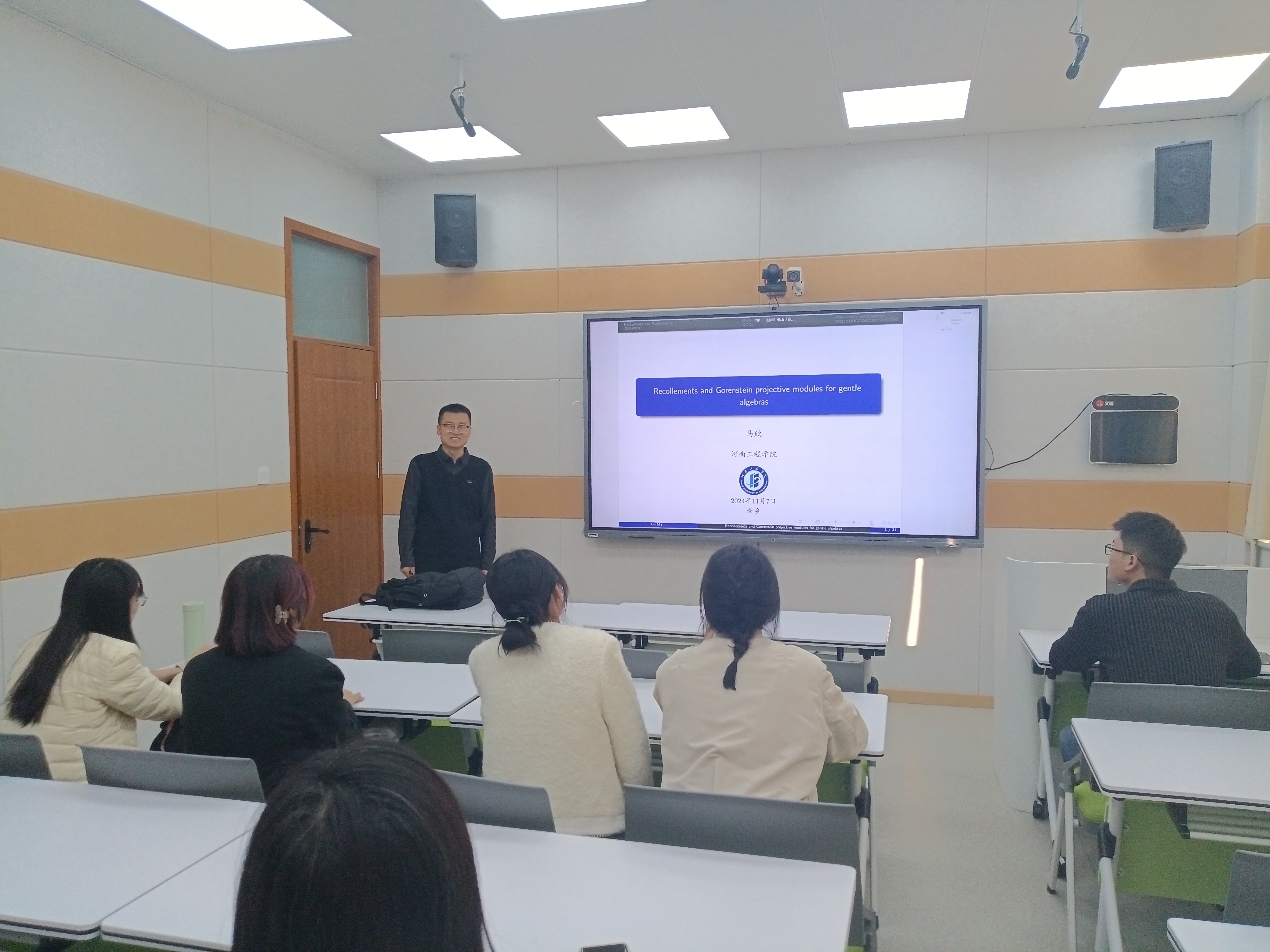 11月7日下午,应数学与信息科学学院邀请,河南工程学院马欣博士为学院师生做了题为“Recollements and Gorenstein projective modules for gentle algebras”的学术报告。学院相关学科教师及研究生共同聆听本次报告。 报告中,马欣博士从gentle代数、Gorenstein投射模、粘合等概念谈起,介绍了该课题的研究动机,针对gentle代数上非投射的Gorenstein投射模的刻画问题,给出了非投射的Gorenstein投射模与一些特殊粘合之间的一一对应关系,并展示了丰富的例子。讲座结束后,马欣博士与在场师生进行交流互动,现场气氛热烈,学院师生受益匪浅。 专家简介: 马欣,2013年毕业于伟德官网下载苹果版数学与信息科学学院,获理学学士学位,2018年6月博士毕业于南京大学数学系,获理学博士学位,随后在河南工程学院工作至今,研究方向是同调代数与代数表示论。已主持完成国家自然科学基金青年项目和河南省高等学校重点科研项目各1项,在Front. Math.、 Comm. Algebra、Algebr. Represent. Theory、Acta Math. Sin. (Engl. Ser.)等国际SCI期刊发表学术论文十余篇。 (数学与信息科学学院 马天水) |