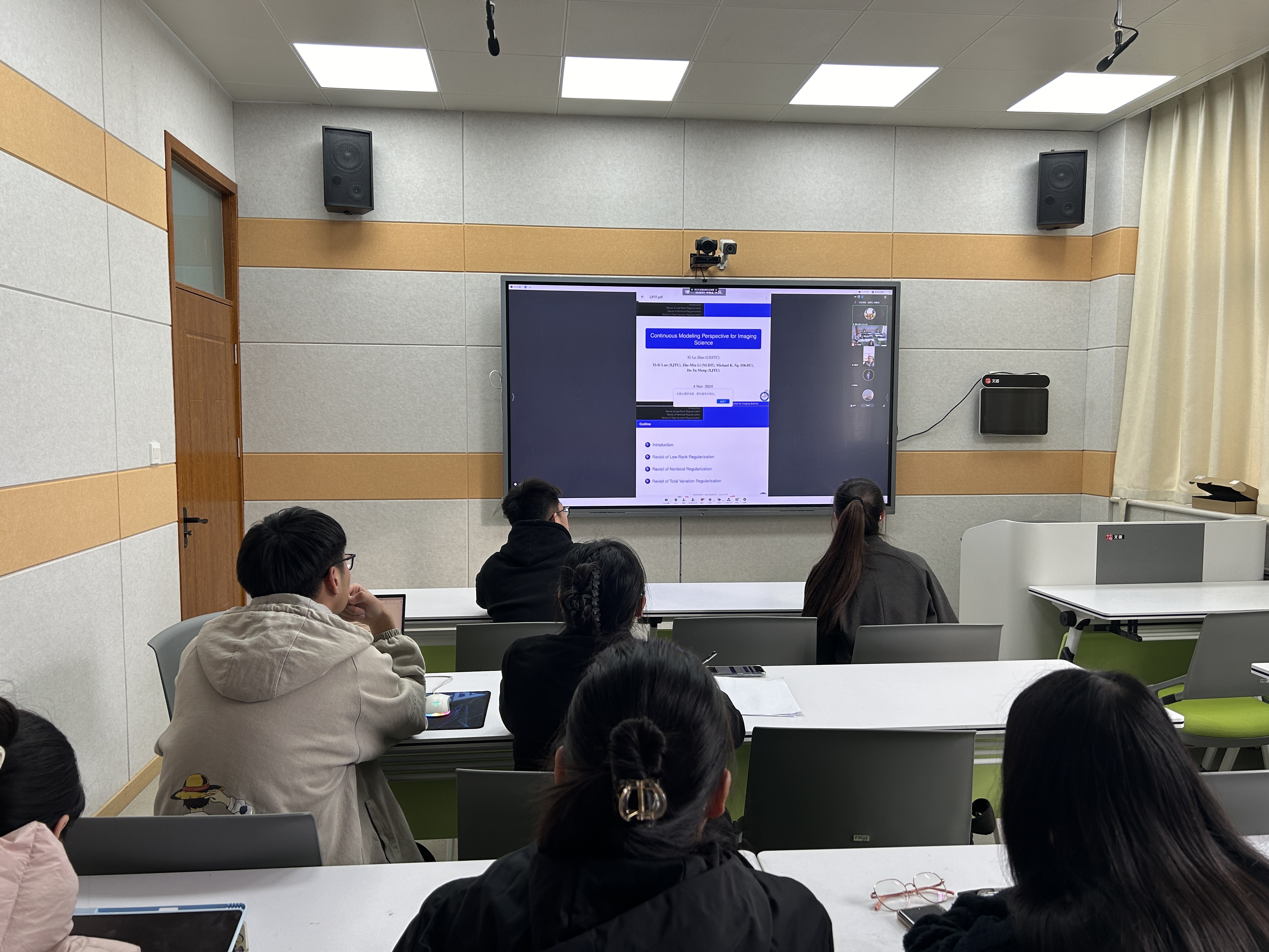 11月18日,应数学与统计学院邀请,电子科技大学赵熙乐教授做客数学与统计学院“牧野格致”讲堂,在学院北楼N501以线上线下结合形式为学院师生作题为“Continuous Modeling Perspective for Data Science”的学术报告,相关专业教师和研究生三十余人参加了此次报告。报告由数学与统计学院崔鲁宾教授主持。 在本次报告中,赵熙乐教授首先介绍了正则化器结合图像的先验知识,是逆成像问题建模的基石。首先回顾经典正则化器,包括全变分正则化器、低秩正则化器和非局部正则化器。然后,讨论经典手工正则化器的局限性(例如,表达能力、适用性和灵活性)。为了解决经典正则化的上述局限性,赵熙乐教授提出了一种用于成像科学的统一的连续建模视角,该视角通过优雅地利用深度神经网络来连续表示离散数据。这种范式使我们能够轻松地解构和重建经典正则化。大量的实验证明了连续建模视角的良好性能。 报告结束后,报告内容引发了与会师生的广泛兴趣和讨论。赵熙乐教授与参会师生进行了互动,大家纷纷提出自己的观点和问题,对学生和老师的提问进行了积极的回答,并给出了未来发展的方向,现场气氛十分活跃,使与会教师和研究生受益匪浅。 专家简介: 赵熙乐,电子科技大学教授、博士生导师,中国工业与应用数学学会副秘书长,入选电子科技大学百人计划和四川省学术和技术带头人后备人选。撰写Elsevier出版社和科学出版社出版的学术专著章节2章,以第一或通讯作者在高水平期刊和会议发表学术论文60余篇,包括应用数学权威SIAM 系列期刊和图像处理权威IEEE系列期刊(TIP、TNNLS、TCYB、TCI和TGRS)及人工智能权威会议CVPR和AAAI等。主持国家自然科学基金面上项目和青年项目、四川省应用基础研究项目等。研究成果获四川省科技进步奖一等奖(自然科学类、科技进步类)、中国计算数学学会青年优秀论文竞赛二等奖、第一、第二届连续两届川渝科技学术大会优秀论文一等奖、首届四川省数学会应用数学奖二等奖。 (数学与统计学院 郭贵良 崔鲁宾) |