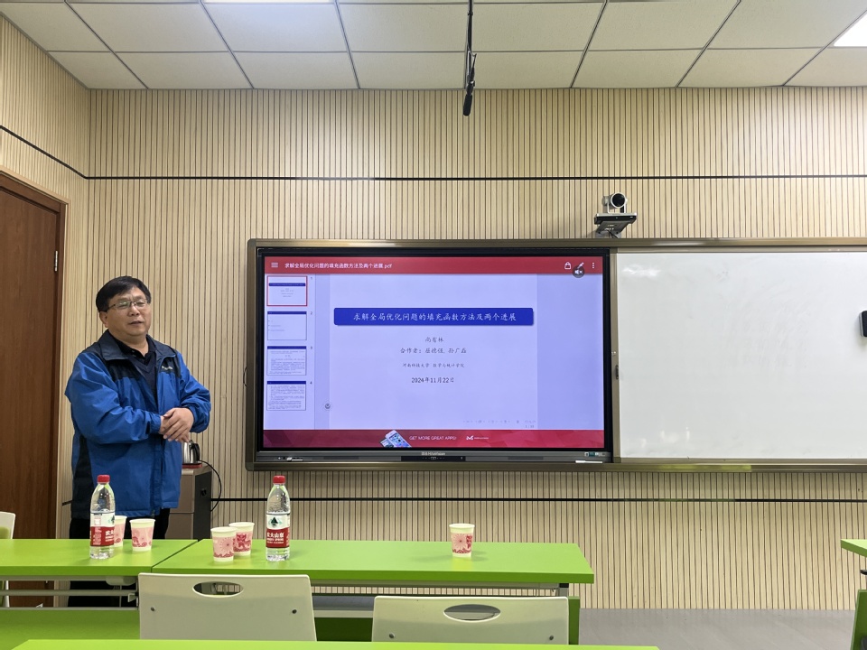 11月22日,应数学与统计学院邀请,河南科技大学尚有林教授做客“牧野格致”讲堂为学院师生作题为“求解全局优化问题的填充函数方法及两个进展”的学术讲座,学院相关研究方向师生参加此次讲座,学院副院长裴永刚主持。 尚有林教授首先介绍了求解全局优化问题的填充函数方法的定义、设计原理以及填充函数方法的演化,然后介绍在填充函数方法方面的两个进展:(1) 提出一种新的无参数连续可微填充函数;(2)提出了一种与目标函数具有相同局部极小点的单参数填充函数。讲座结束后,尚有林教授就填充函数等相关问题与参加讲座的师生展开深入的讨论和交流。尚有林教授的讲座内容丰富,使参会师生对求解全局优化问题的填充函数方法有了深刻的认识,受益匪浅。 专家简介:尚有林,二级教授,博士生导师,河南省政府特殊津贴专家,河南省高层次人才(C类),曾任河南科技大学数学与统计学院院长,现任河南科技大学运筹与大数据研究院院长,河南省大数据智能分析与优化创新实验室主任,中国运筹学会常务理事,中国运筹学会数学规划分会资深理事,河南省运筹学会理事长。2005年上海大学运筹学与控制论博士毕业,2005年10月-2007年10月同济大学应用数学博士后流动站研究。一直从事最优化理论、算法及其应用研究。在非线性规划、全局优化、系统工程等领域取得多项研究成果,国内外期刊发表论文150多篇。先后到美国、巴西、智利等进行学术访问交流。主持国家自然科学基金面上项目4项、河南省自然科学基金项目、国际合作项目多项。出版专著1部主编教材4部。 (数学与统计学院 郭静邑) |
