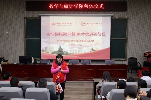 ![]() ![]() 12月17日下午,数学与统计学院于学院报告厅举办退休教师荣休仪式。荣休教师刘文安、张建海、李俊芬及学院党政领导、全体教职工参加。仪式由院党委副书记王岩主持。 与会人员观看荣休教师们的“人生拾光”视频。视频展现了三位教授在教育岗位上的点滴瞬间,拉开了本次荣休仪式的序幕。 院长黄广月在致辞中指出,学院成就的取得离不开各位荣休教师几十年的辛勤耕耘,离不开全体师生员工和校友的共同努力。希望各位荣休教师退休不退志,一如既往地关心和支持学校和学院的发展;离岗不离心,一如既往地引领和帮扶青年成长;卸任不卸责,一如既往地讲好师大数院故事,让“明理守正 究数创新”的精神薪火相传,荣光接续。 院党委书记姜良、院长黄广月代表学院向荣休教师赠送纪念品。 系部主任刘利敏、王静作教师代表发言,分享了与荣休教师共事的美好回忆,并表示会以老教师为榜样,开拓进取,为学院发展贡献力量。 学院学子向荣休教师赠送鲜花,并为他们佩戴绶带。本科生代表朗诵《半生耕耘,荣秀颂恩》,研究生代表献唱《夜空中最亮的星》,朗诵声情并茂地赞颂了老师们的烛光精神,歌声中满含对老师们的敬爱与不舍。 荣休教师分享了自己在教育工作中的宝贵经历和感人故事。期待学校、学院、学生都能取得更加长足的发展,期待每一位教职工都能在学院这片沃土上成就新业绩。 “手握粉笔绘春秋,荣休一刻心依旧。”荣休仪式不仅是对往昔峥嵘的怀念,更是对未来蓝图的期许。在此,我们向所有辛勤耕耘的老师们致以最崇高的敬意,也衷心祝愿荣休教师们在新的生活旅程中身体健康、幸福快乐! (数学与统计学院 毛悦梅 李振颖/文 刘艺筱/图) |