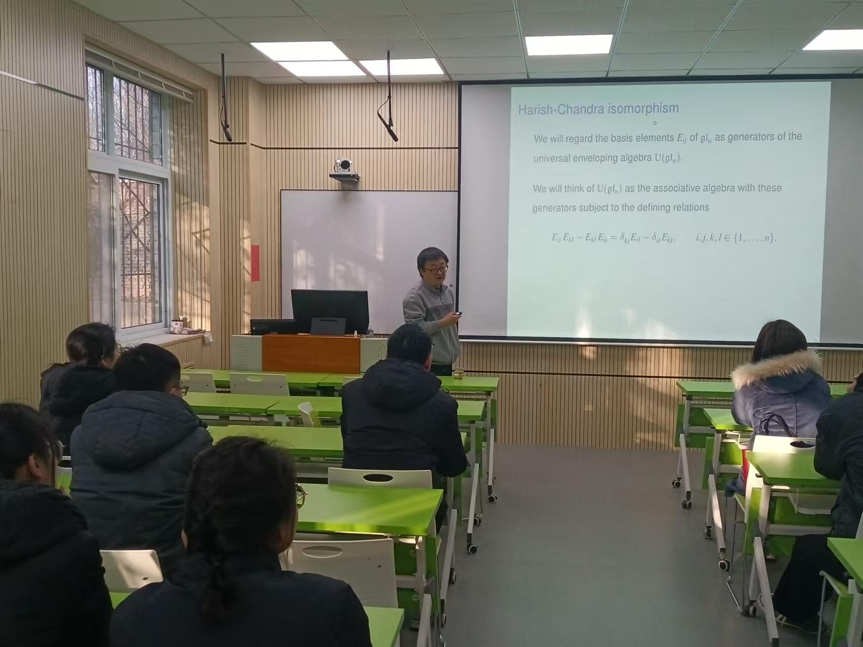 12月21日上午,应数学与统计学院邀请,华南理工大学刘明副教授为学院师生做了题为“Quantum Casimir elements and Higher Capelli identities”的学术报告。学院相关学科教师及研究生共同聆听本次报告。 报告中,刘教授首先给出了Casimir元、不可约最高权表示、Harish-Chandra同构、Capelli行列式、 Gelfand不变量等经典情形的基本概念和结论。随后介绍了Reshetikhin–Takhtajan–Faddeev实现并分享了和合作者在Harish-Chandra同构、高阶量子Capelli等式等方面的最新进展。讲座结束后,刘教授与在场师生进行交流互动,向大家分享了其宝贵的科研经历,现场气氛热烈,学院师生备受鼓舞,受益匪浅。 专家简介: 刘明,华南理工大学数学学院副教授。主要研究方向为量子群与Yangian代数的表示理论。代表性成果发表在 Advances in Mathematics , Communications in Mathematical Physics, Journal of Algebra 等国际知名期刊。主持国家自然科学基金面上项目1项,国家自然科学基金青年基金1项,广东省自然科学基金面上项目1项,参与国家自然科学基金重点项目1项。 (数学与统计学院 马天水) |