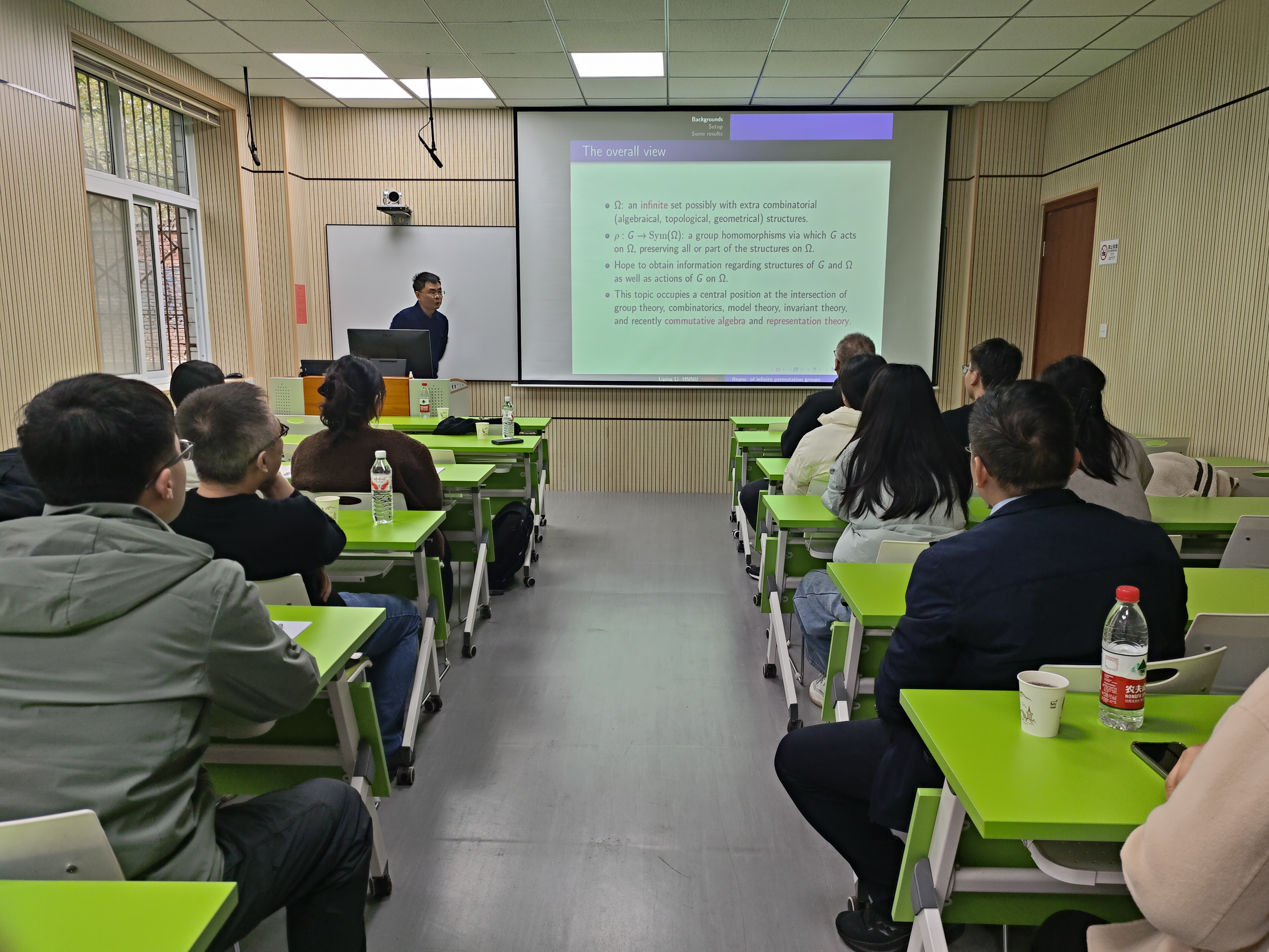 11月23日,应数学与统计学院邀请,湖南师范大学李利平教授为学院师生做了题为“无限置换群的离散表示及其应用”的学术报告。学院相关学科教师及研究生共同聆听了本次报告。 李利平教授系统梳理了无限置换群离散表示的研究背景与发展动态,指出该方向处于群论、组合数学、模型论、不变量理论以及近期兴起的交换代数与表示论等多个领域的交叉核心。在此基础上,他进一步建立了离散表示与层范畴之间的深刻联系,并探讨了选择公理在此框架下的若干等价刻画。 讲座结束后,梁教授与在场师生进行交流互动,向大家分享了他的科研经历以及培养研究生的宝贵经验,现场气氛热烈,学院师生受益匪浅。 专家简介: 李利平,湖南师范大学数学与统计学院教授、院长,湖南省政协委员。主要从事范畴表示论与表示稳定性理论研究,在无限组合范畴表示理论的同调方法、同余子群的同调群的稳定性质等问题上取得了突破性成果,被Notices AMS综述文章誉为表示稳定性理论开拓者之一,应邀担任美国-以色列双边基金会、以色列基金委、奥地利基金委项目评审专家。在Adv. Math., Trans. Amer. Math. Soc., Selecta Math., J. Lond. Math. Soc.等期刊发表论文近40篇,主持国家自然科学基金多个项目。 (数学与统计学院 赵婵 马天水) |