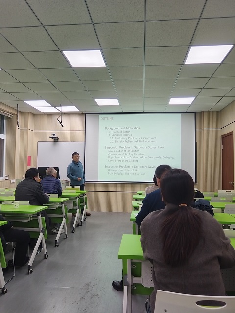 应数学与统计学院邀请,11月14日下午,我院1999级校友李海刚教授为学院师生做题为《Estimates for stress concentration between two adjacent rigid inclusions in stationary Stokes/Navier-Stokes flow》的学术报告,相关专业老师和研究生参加了此次报告。报告会在数学南楼107举行,由数学与统计学院副院长裴永刚主持。 在报告中,李海刚教授首先介绍了颗粒在复杂流体中的悬浮导致复杂流动行为的研究背景。报告指出研究两个刚性颗粒之间狭窄区域的应力增强是非常重要的。列举了当两个刚性粒子之间的距离在二维和三维有界域中趋近于零时,平稳Stokes/Navier-Stokes流的梯度的点向上界和二阶偏导数。并通过建立相应的下界,证明了这些爆破率的最优性。 报告结束后,李海刚教授和与会师生就提出的相关问题进行热烈的交流和讨论。 专家简介: 李海刚,北京师范大学数学科学学院教授、博士生导师,国家级人才计划青年项目入选者。主要从事材料科学中的偏微分方程理论研究,在复合材料中的Babuska问题、流-固耦合悬浮问题等方面取得一系列有国际影响的重要成果。在AdvMath、ARMA、JMPA、TAMS、JFA、AIHP-NL、SIMA、SIAP、CV&PDEs、IMAJMA等国际权威数学杂志发表论文40余篇,解决了偏微分方程理论与数值计算中的若干难题,获得教育部自然科学二等奖、北京市自然科学二等奖(第一完成人)等省部级奖励。 |