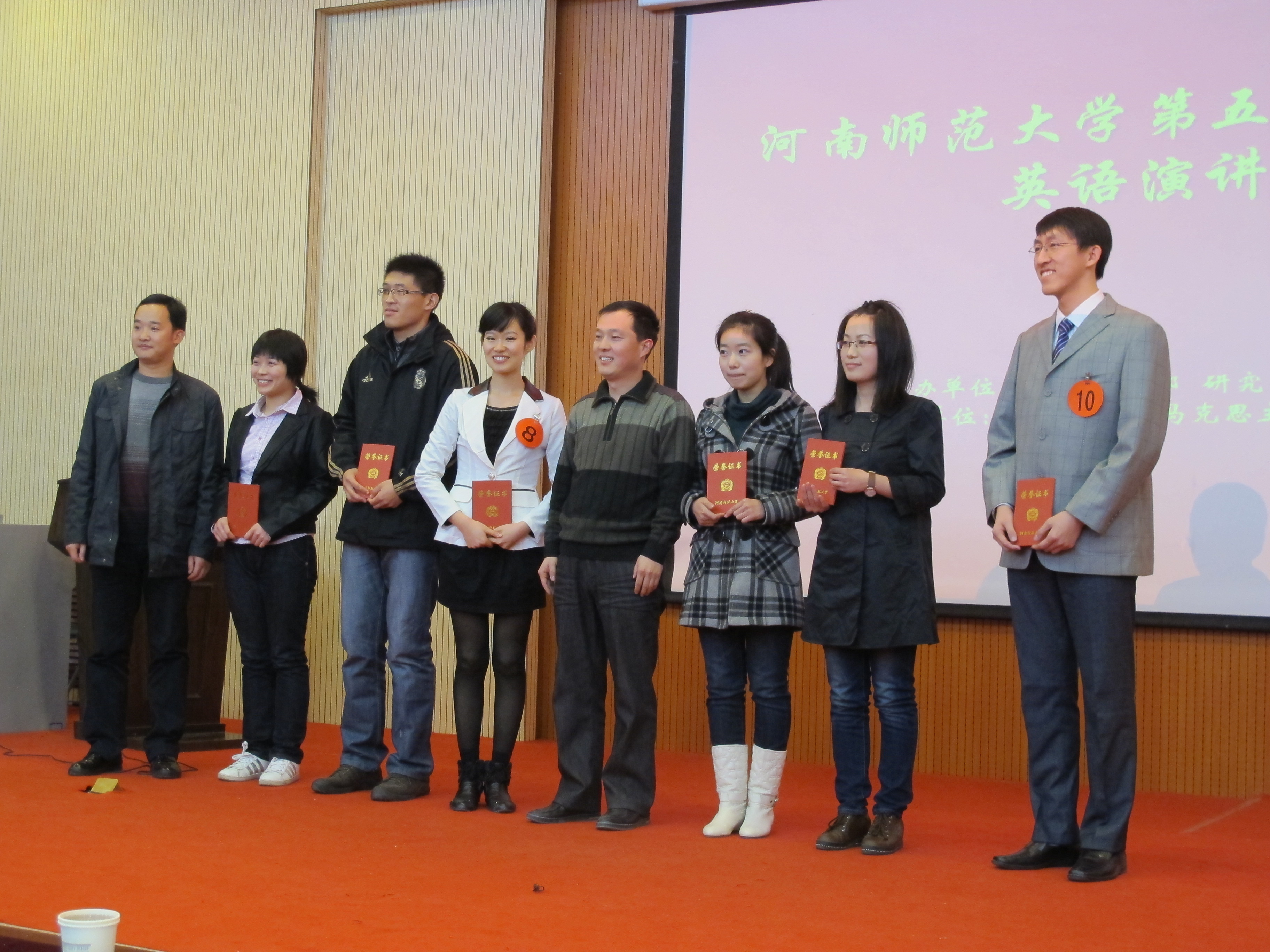 在演讲比赛中,我院8号选手史睿同学沉稳从容,表现出色,以饱含深情的演讲博得了在场观众的阵阵喝彩,也得到了在场评委老师的一致认可。并荣获了这次研究生英语演讲比赛决赛一等奖的好成绩。最后,研究生学院院长吴益民老师用英语总结讲话。大赛在颁奖仪式中圆满结束。