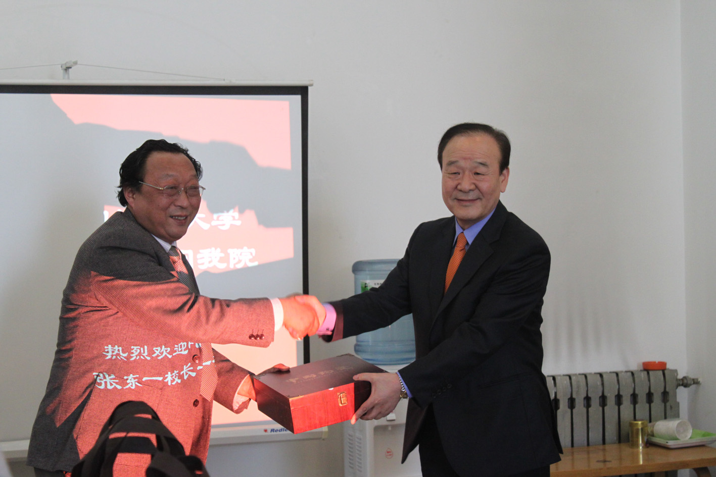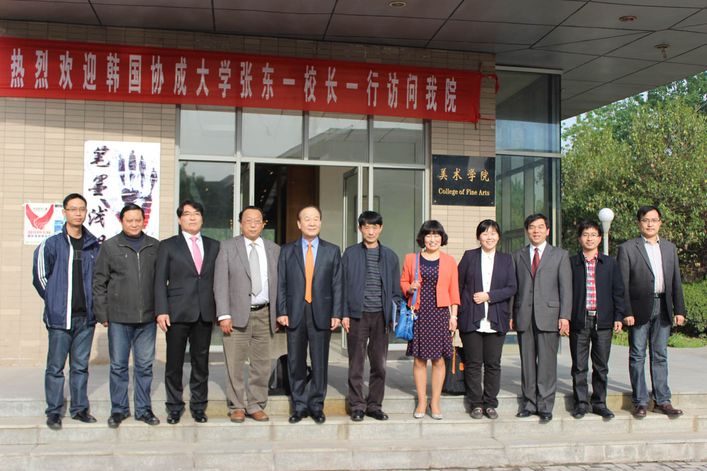 2013年4月24日下午,韩国协成大学张东一校长率团访问了伟德官网下载苹果版美术学院。随团来访的有协成大学计划处处长李贞根教授、对外交流科科长朴贤荣女士和中国交流项目负责人文智惠女士。交流会由美术学院党委书记杜晓田主持,他首先代表美术学院对张东一校长一行的来访表示热烈欢迎。美术学院张建伟院长向张东一校长介绍了美术学院的历史沿革、师资队伍、办学条件、教学和科研现状等,并祝愿张东一校长此次访问圆满成功、行程顺利、两校的友谊不断加深。张东一校长对美术学院的盛情接待表示感谢,并希望在以后的日子里,双方能够进一步合作,共同进步发展,也真诚欢迎美术学院领导、教授访问协成大学。