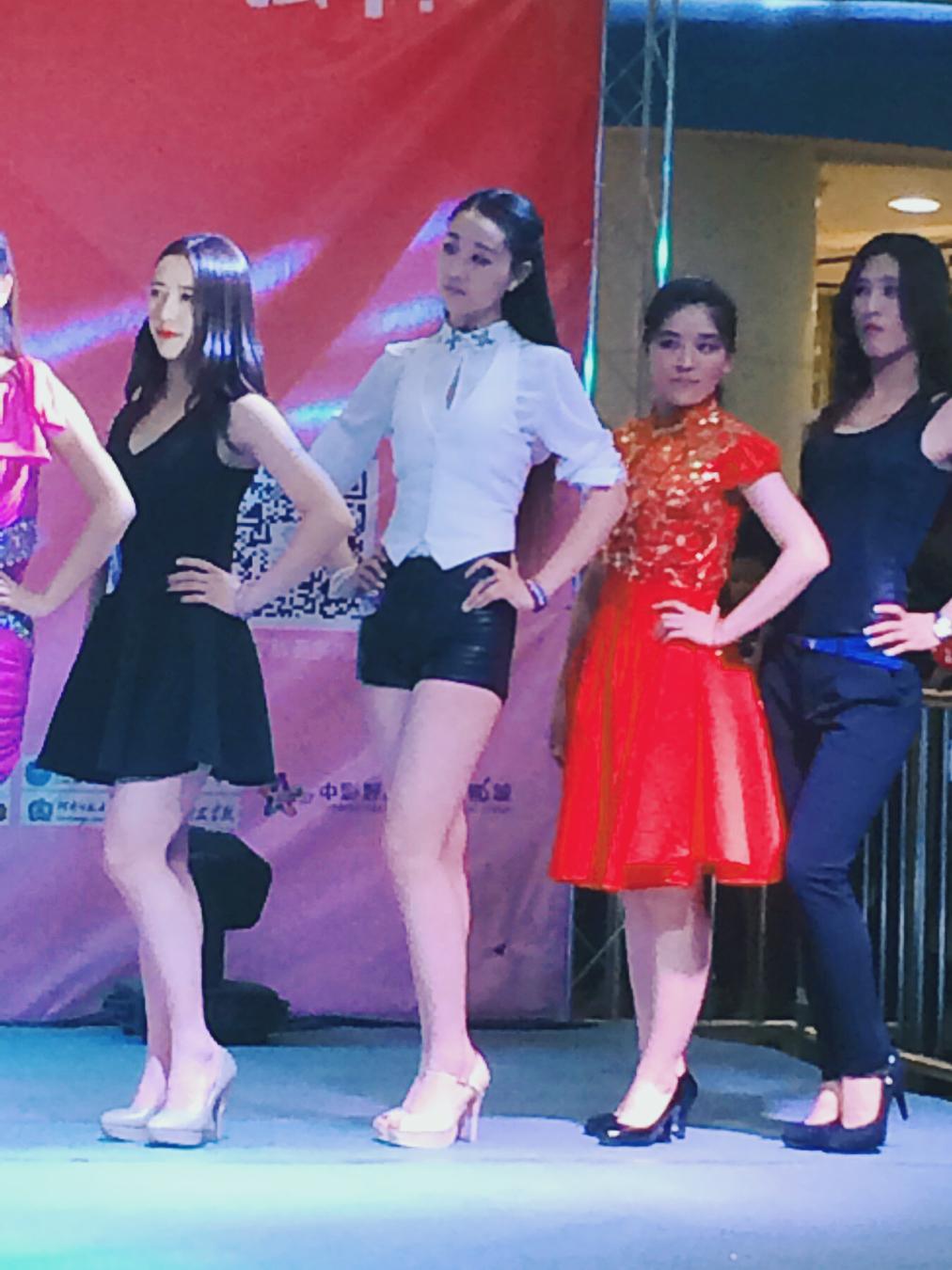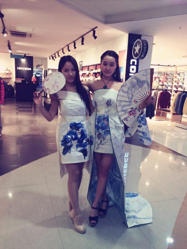 第二轮“才艺展示”。蒋丽莎同学带来的服装展示“青花瓷系列之凤穿牡丹”赢得阵阵掌声与欢呼声。服装为现场设计制作,以宣纸为材料,运用国画技法绘制,修身的剪裁、霸气的长拖尾、中国风的表演,激动人心的现场作画。同时获得了评委、观众的赞美及认可,赢得了本环节最高分。