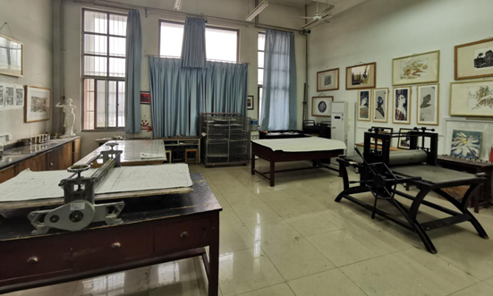 版画实验室成立于2007年,现有专业教师一名、具有高级职称。版画实验室一共分为两个工作室:一为综合版工作室,现在以木版制作为主,配有木版机、铜板机等印刷设备、。二为丝网工作室,配有烘干机;自动晒版机;大型、中型、小型手动气动印刷机台等设备;此实验室以供美术学院研究生、全日制本科生美术教育、绘画本科生、国培学生的版画必修课及专业老师个人创作所用。采用多媒体和实践相结合的教学模式,让学生了解当今社会的艺术动态,在自己的创作中得以运用。版画实验室也是版画专业老师创作与科研的场所,使教师自身实力得以提高。