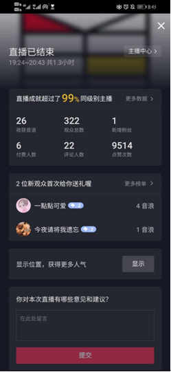 直播结束时,大家纷纷发弹幕说:“祝师大云端美育支教团越办越好”“师大美育支教团加油”等鼓励的话语,这使我们更加地具有继续前进的信心和力量。本次直播时长80分钟,观看人数共计322人,收获点赞9514个。由此可见,本次直播给予了大家美的感受、传递了积极向上的正能量,也符合师大美育支教团的初衷——以美育人,以文化人,带领大家从生活的一点一滴中提高审美素养,发现、感受生活中的美好。