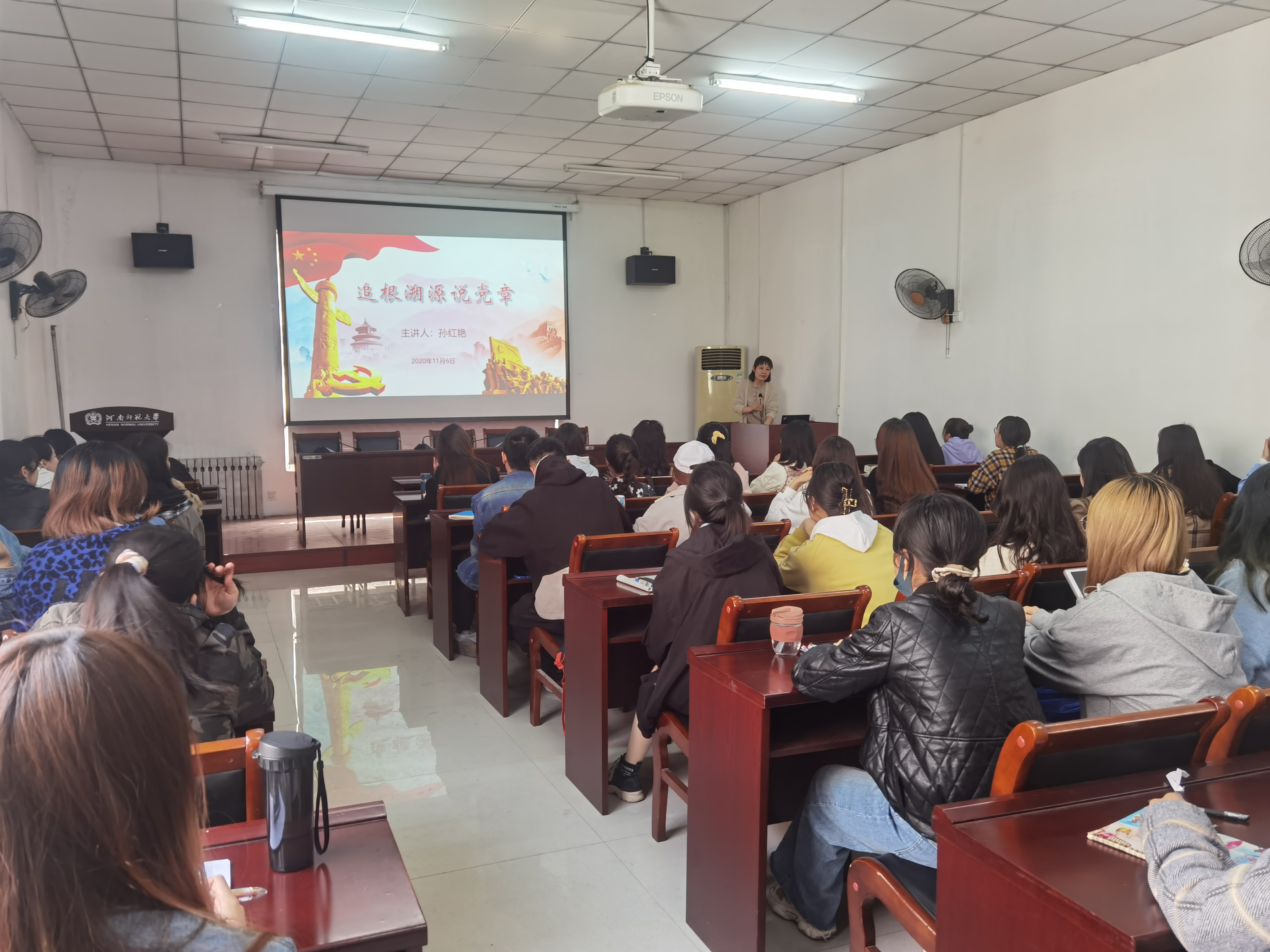 孙红艳以“追根溯源说党章,顶天立地谈信仰”为题,围绕“党章的诞生与发展”、“解读十九大党章修改内容”、“从党章发展历程中汲取信仰力量”三方面进行重点阐述和讲解,以中国共产党章程为切入点,详细解读了中国共产党的发展历程,深刻阐释了中国共产党的初心使命。随后,孙红艳与参会学生亲切交流并就党史学习教育提出三点希望:一是希望大家学出理想信念,用百年党史鼓舞斗志、明确方向,树立远大的理想抱负;二是希望学出责任使命,作为青年人要有追求、有抱负,懂得自己肩上有重任,努力为国家繁荣和民族复兴做出应有贡献;三是希望学出担当作为,传承师大优良学风,学真本领、练真功夫、做奋斗者,勇于肩负起时代赋予的重任。