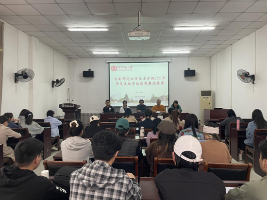 4月7日下午,美术学院2021年师范生教学技能竞赛动员会在崇美楼三楼报告厅召开。学院副院长王霄、专业教师马燃、2018级辅导员张陆天和2018级美术学专业全体学生参加本次动员会,动员会由张陆天主持。