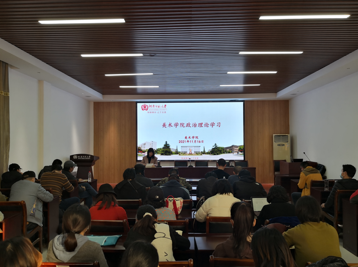 11月16日下午,美术学院在办公楼三楼会议室组织专题学习,集中学习党的十九届六中全会精神,全体教职工参加了会议,会议由学院党委书记孙红艳主持。